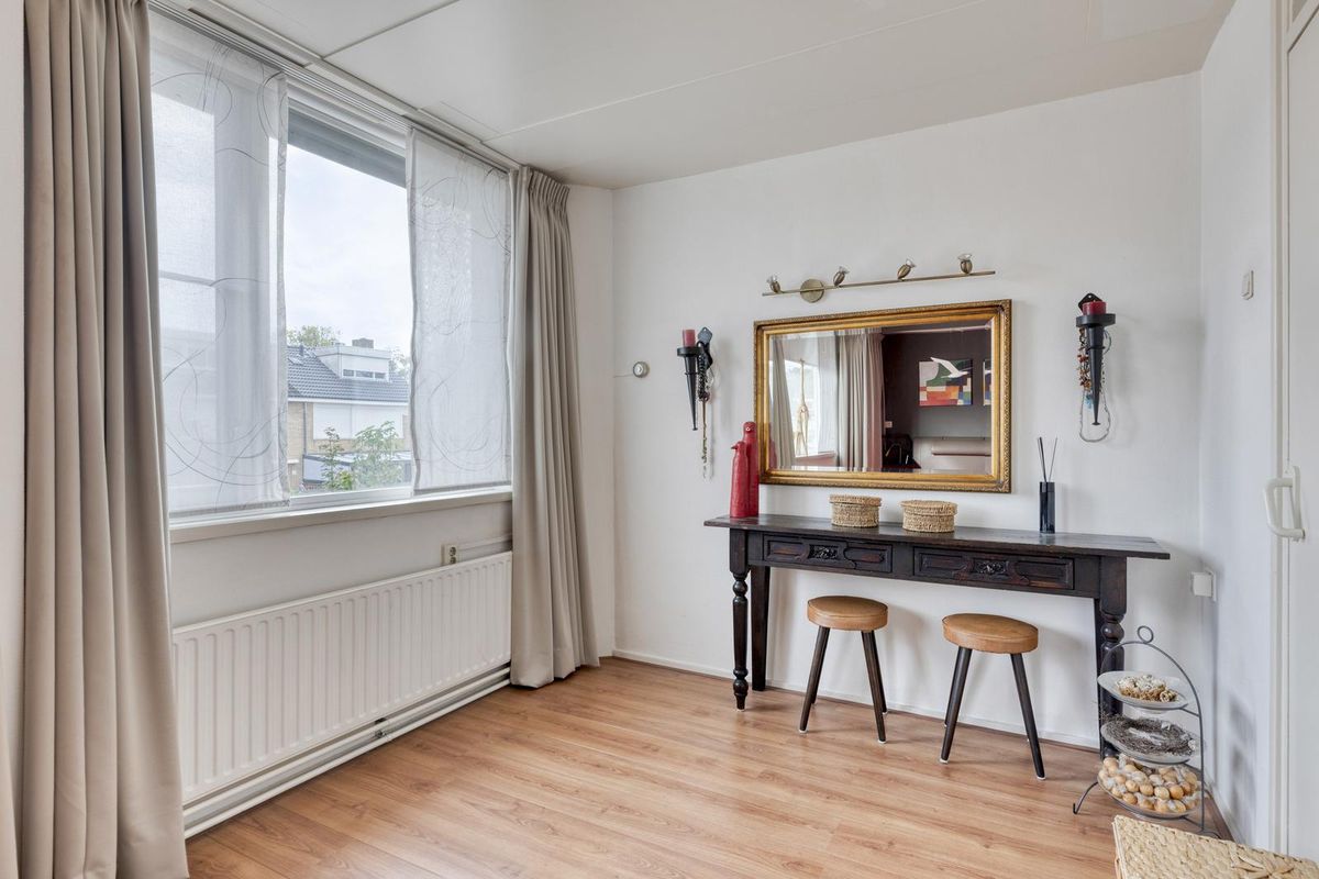 Vanaf de overloop heb je toegang tot twee ruime slaapkamers, de badkamer, het tweede toilet en de trap naar de tweede verdieping.