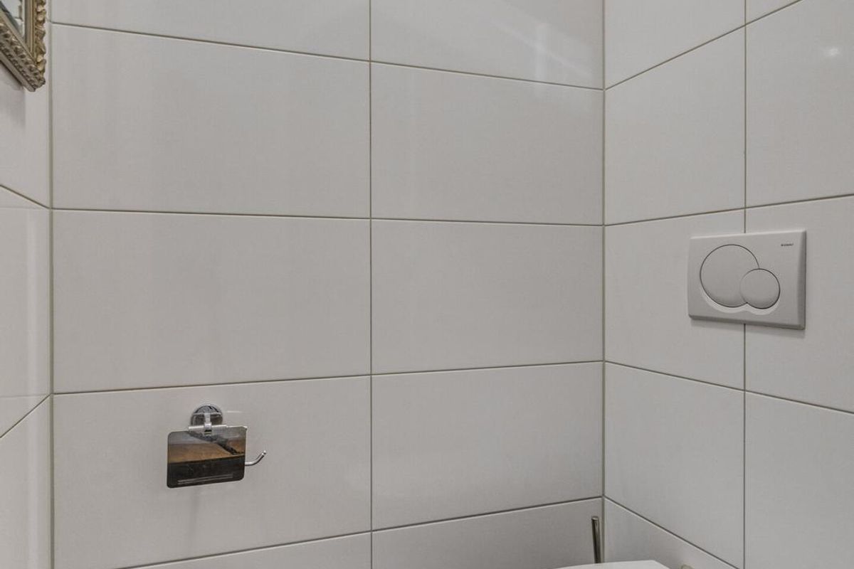 Through the communal entrance on the ground floor, the apartment can be reached by stairs or elevator. The entrance of the apartment is located on the second floor. A spacious L-shaped hallway provides access to the various rooms, including a separate toilet and a built-in cupboard with space for a washing machine and dryer.