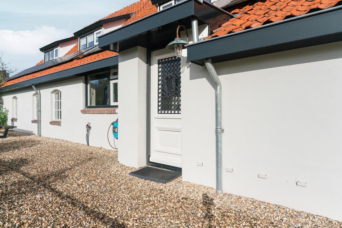 Het perceel is royaal en met oog voor detail aangelegd. Via de brede oprijlaan bereik je de dubbele garage met elektrische deuren (2023), geschikt voor twee auto’s. Direct naast de garage ligt een carport met eveneens ruimte voor twee auto’s, waar bovendien een laadpaal voor een elektrische auto is geplaatst.