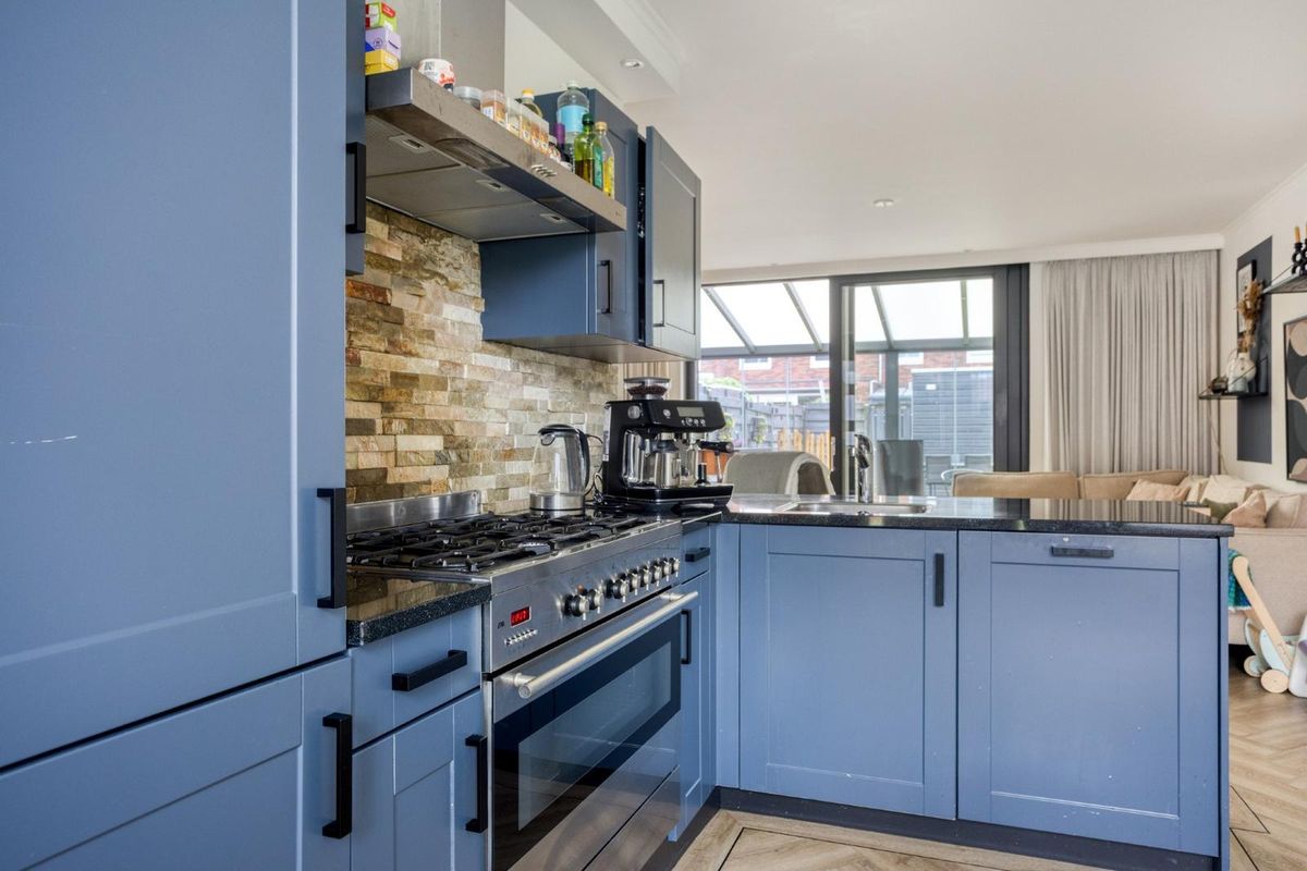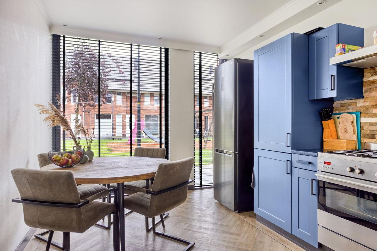 Het hart van de woning is de mooie open keuken met plek voor een royale eettafel, waar koken en samenzijn vanzelfsprekend samenkomen.
