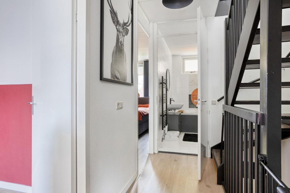 Je komt binnen in de hal met de trapopgang, meterkast en een modern toilet.