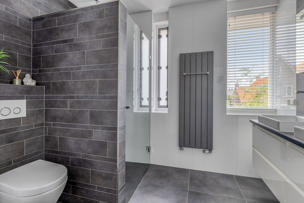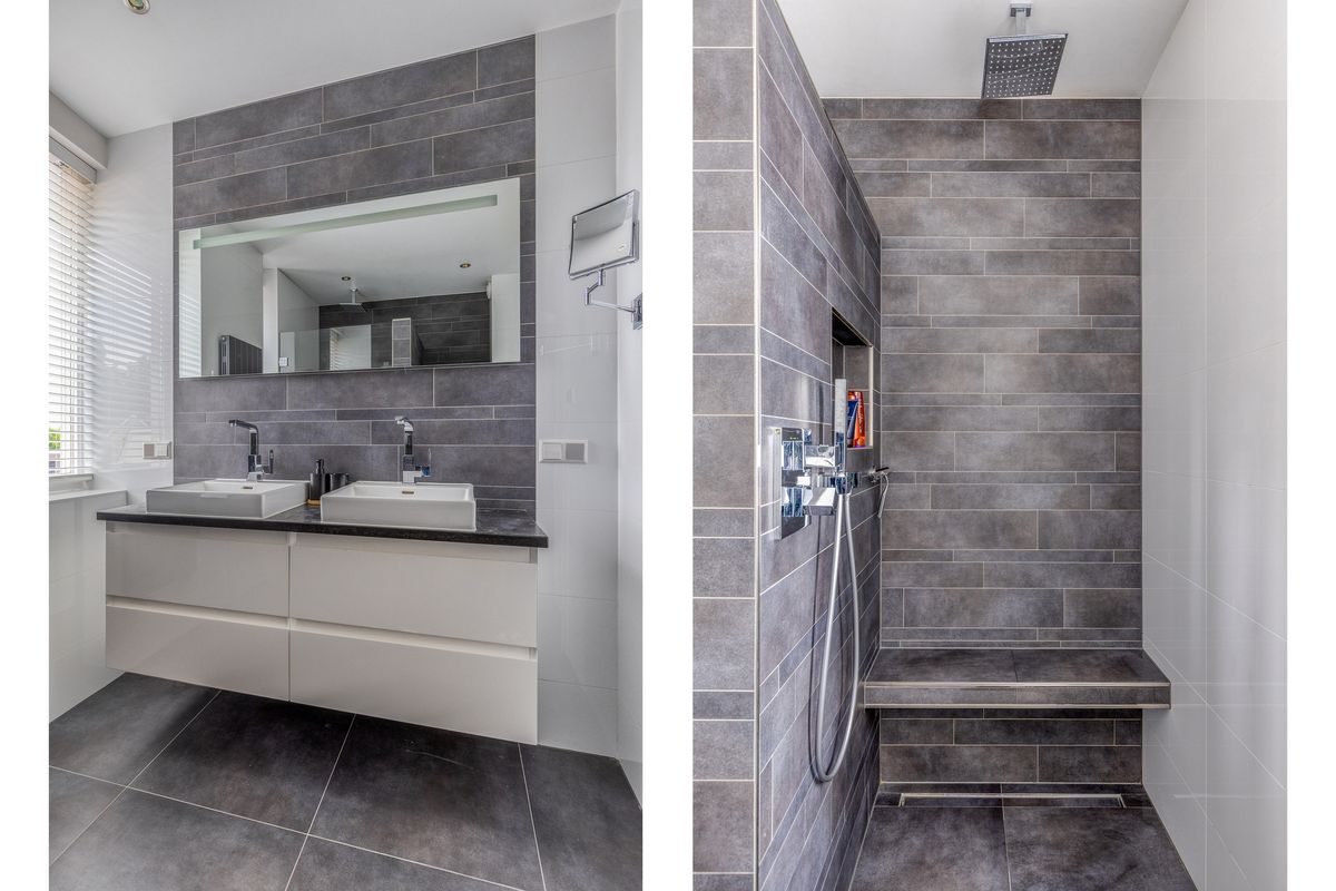Overloop met toegang tot drie slaapkamers en de badkamer. Twee slaapkamers zijn gelegen aan de achterzijde van de woning. De derde slaapkamer en badkamer zijn gesitueerd aan de voorzijde. Alle slaapkamers zijn voorzien van een rolluik. De vergrootte luxe badkamer is voorzien van een regendouche met glazen wand, dubbele wastafelmeubel, wandcloset, designradiator en een radio. De spiegel boven de wastafels is voorzien van verwarming.