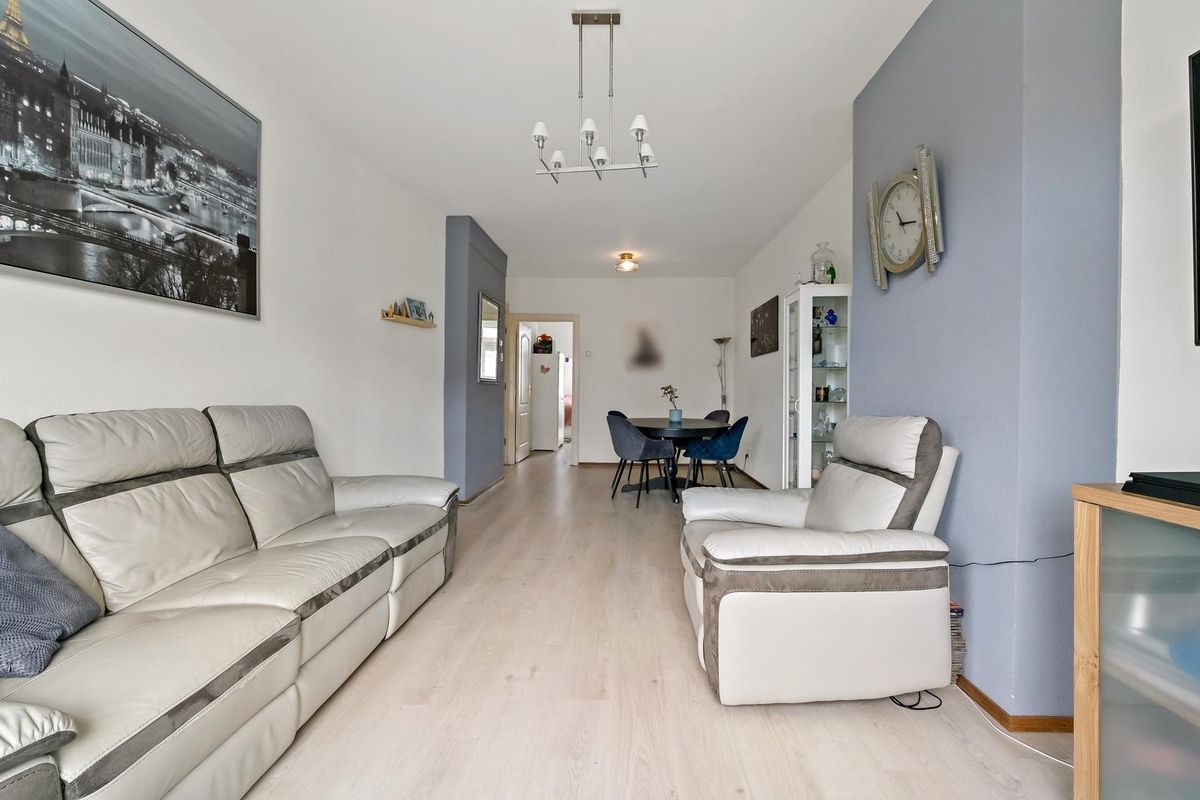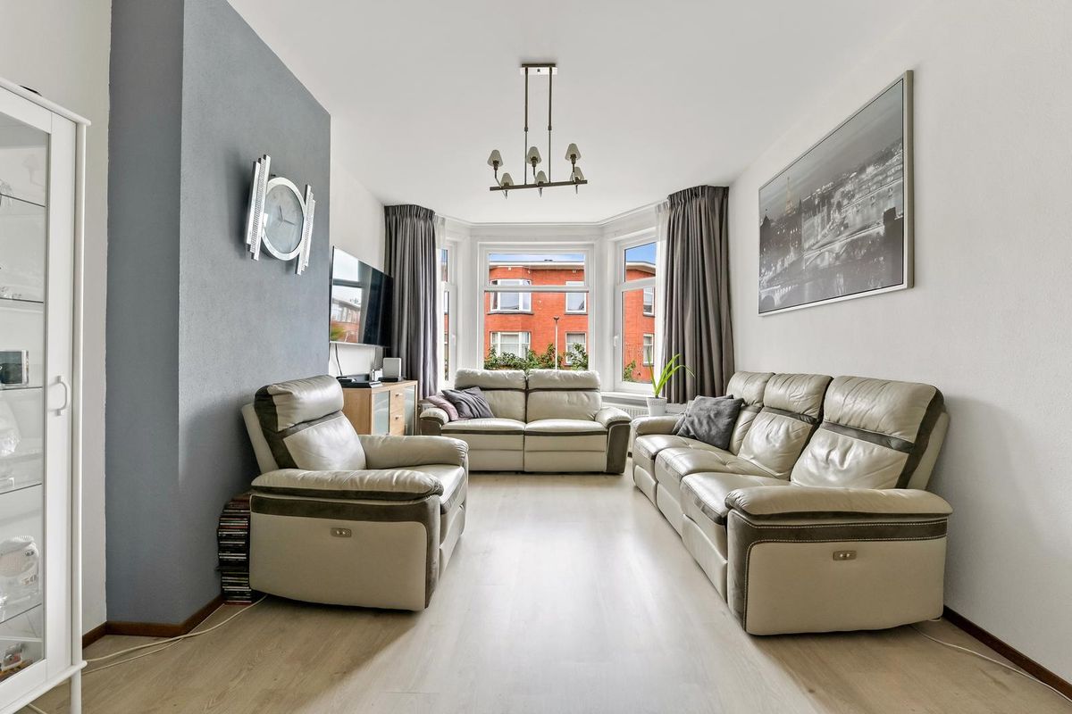 De woonkamer ligt aan de voorzijde en beschikt over een sfeervolle erker. Vanuit de woonkamer is er toegang tot een ruime slaapkamer aan de achterzijde.