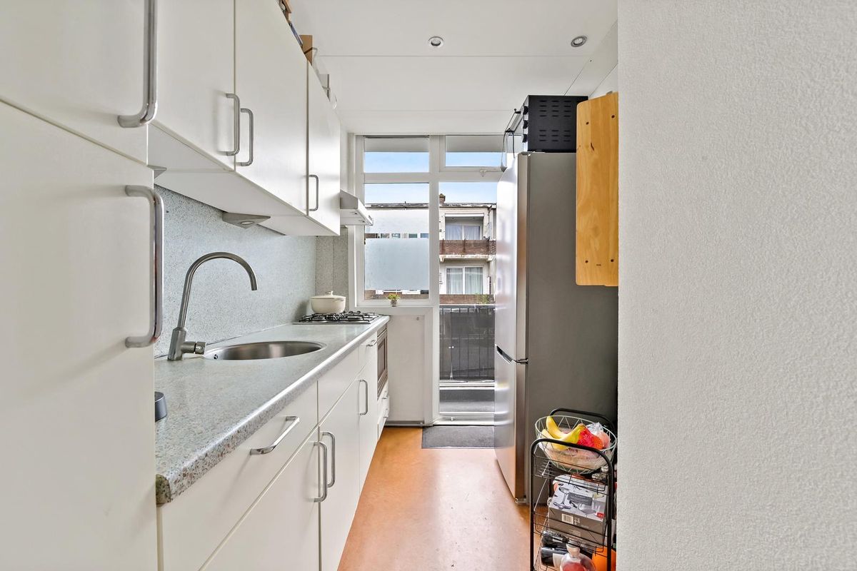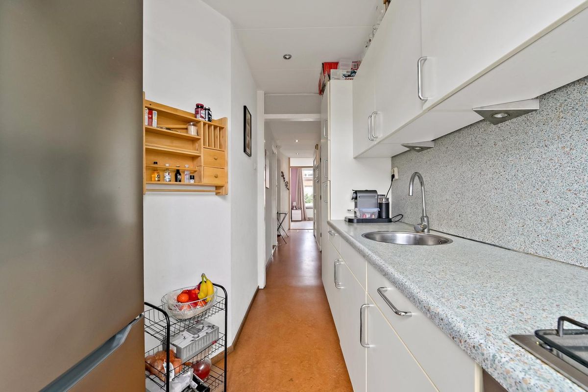 De keuken, gelegen aan de achterzijde tussen beide slaapkamers in, is uitgevoerd in rechte opstelling en voorzien van diverse inbouwapparatuur. Vanuit de keuken, de achterzijkamer en de achterkamer is toegang tot het balkon. Dit balkon ligt op het noordoosten, ideaal om te genieten van de ochtendzon.