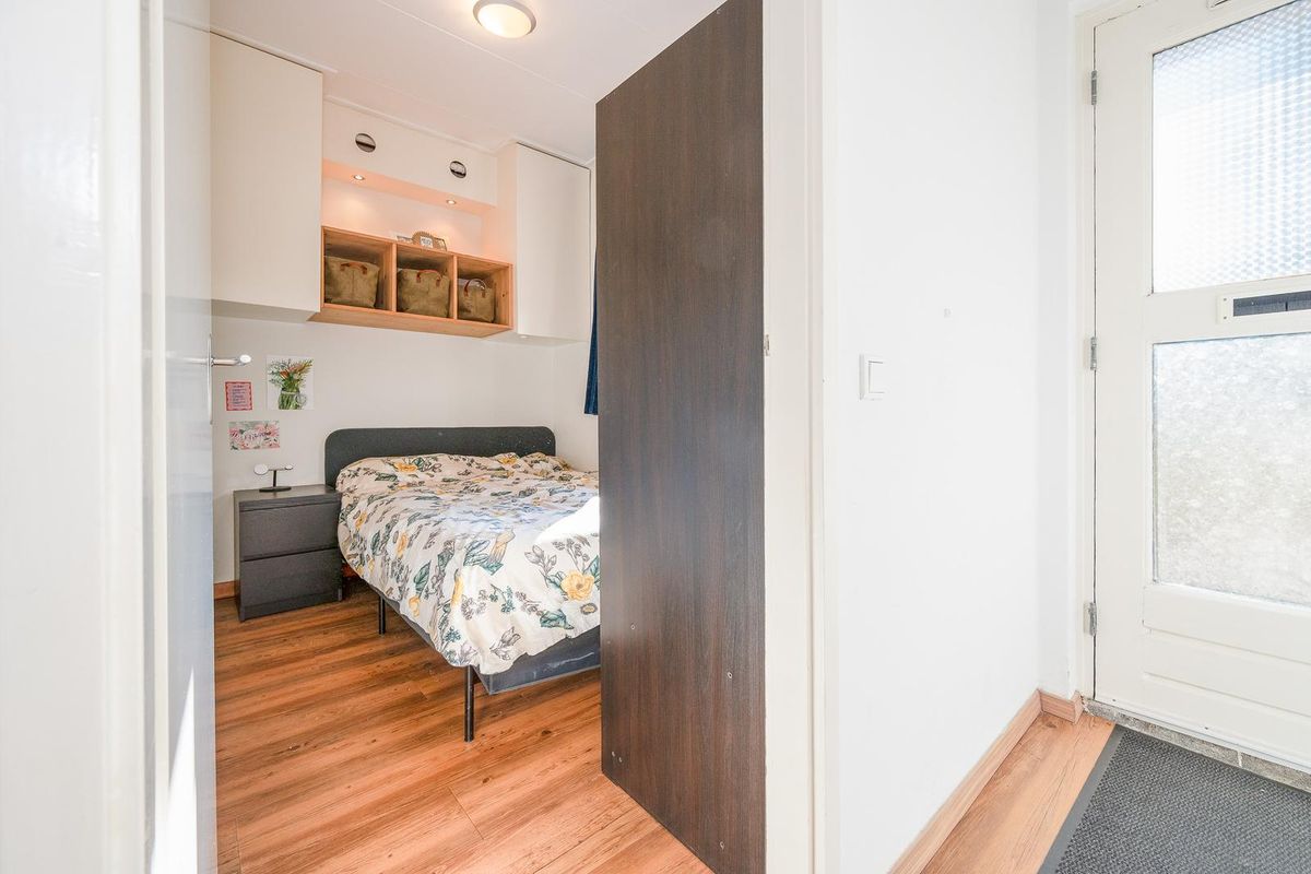 Entree met links de toegang naar de woon-/eetkamer en rechts de slaapkamer en badkamer, de keuken is gesitueerd aan de achterzijde.