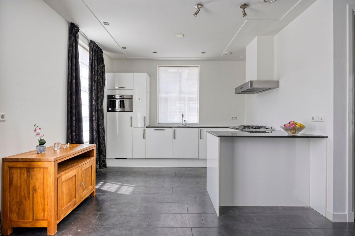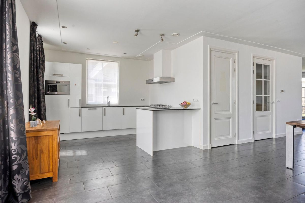 Vanuit het woon- en eetgedeelte heeft u toegang tot de keuken die zich bevindt aan de voorzijde van de woning. De keuken is uitgerust met een hard stenenblad en beschikt over een 5-pits fornuis met afzuiging, spoelbak, vaatwasser, koelkast en een combimagnetron.