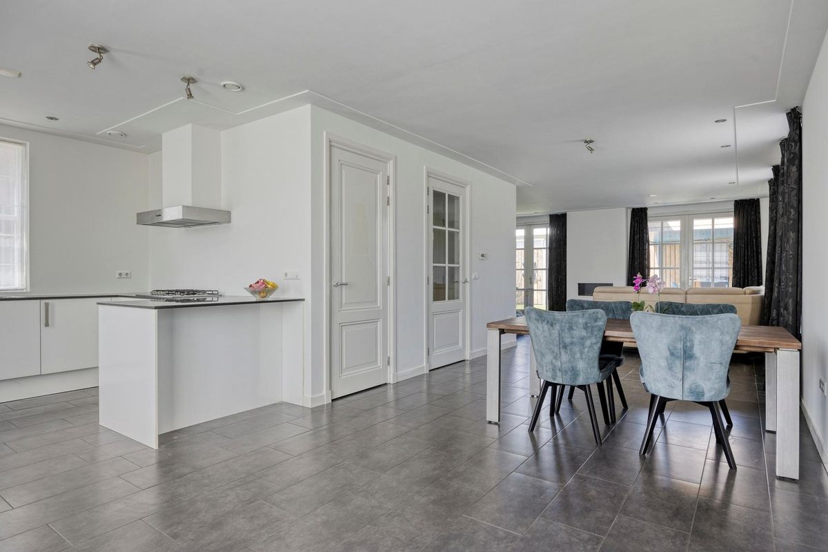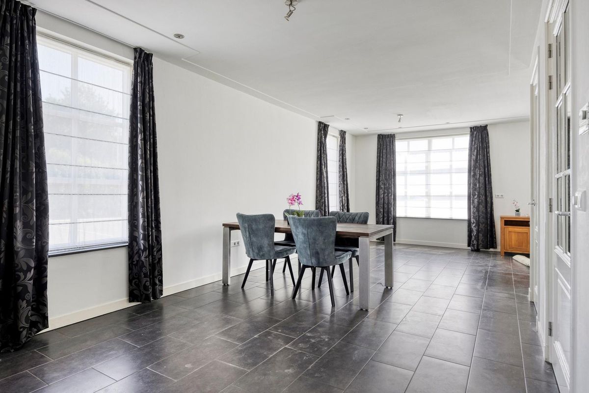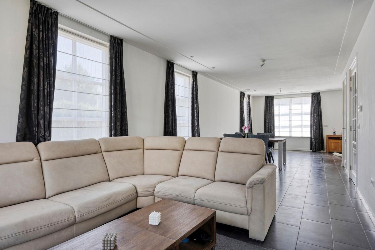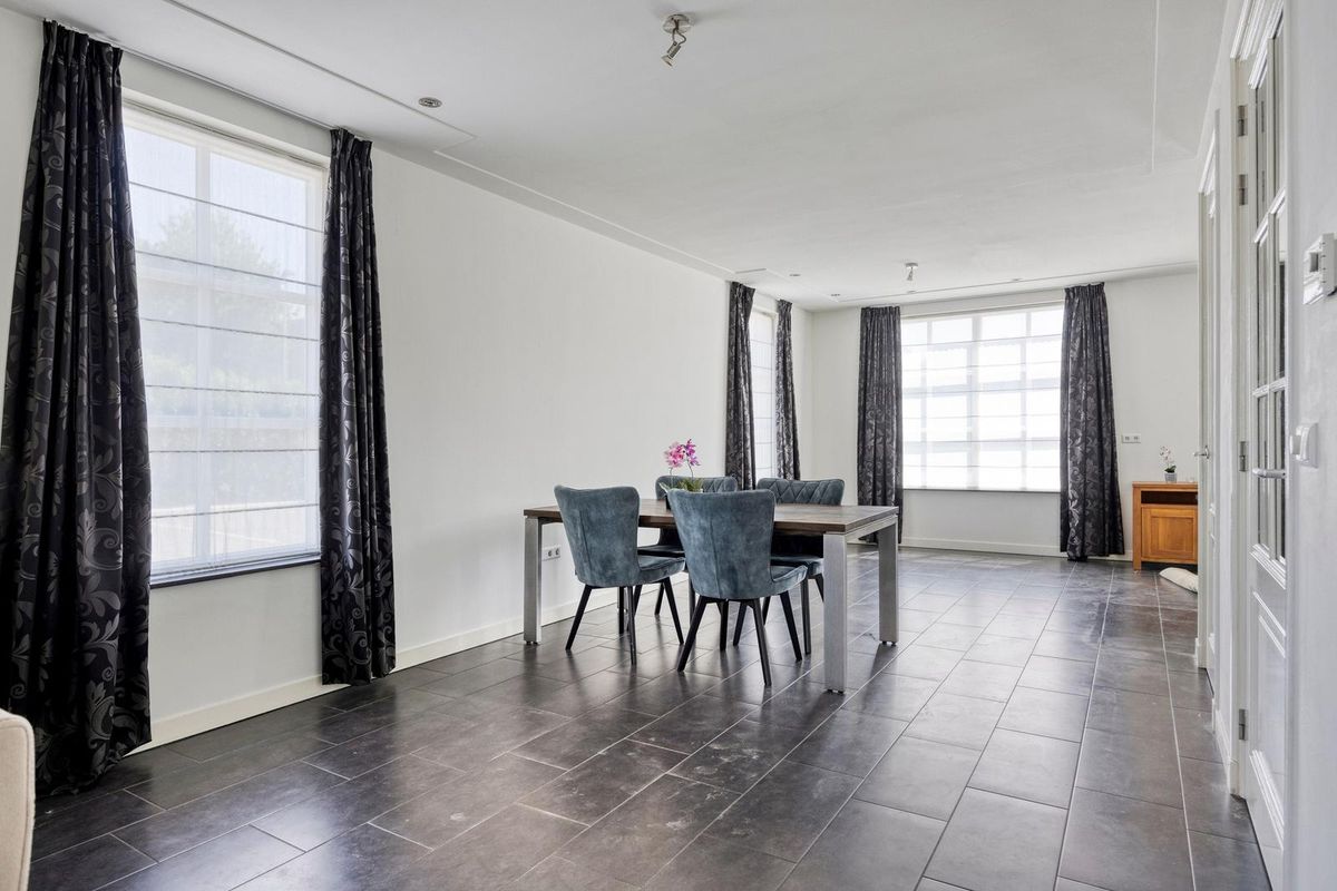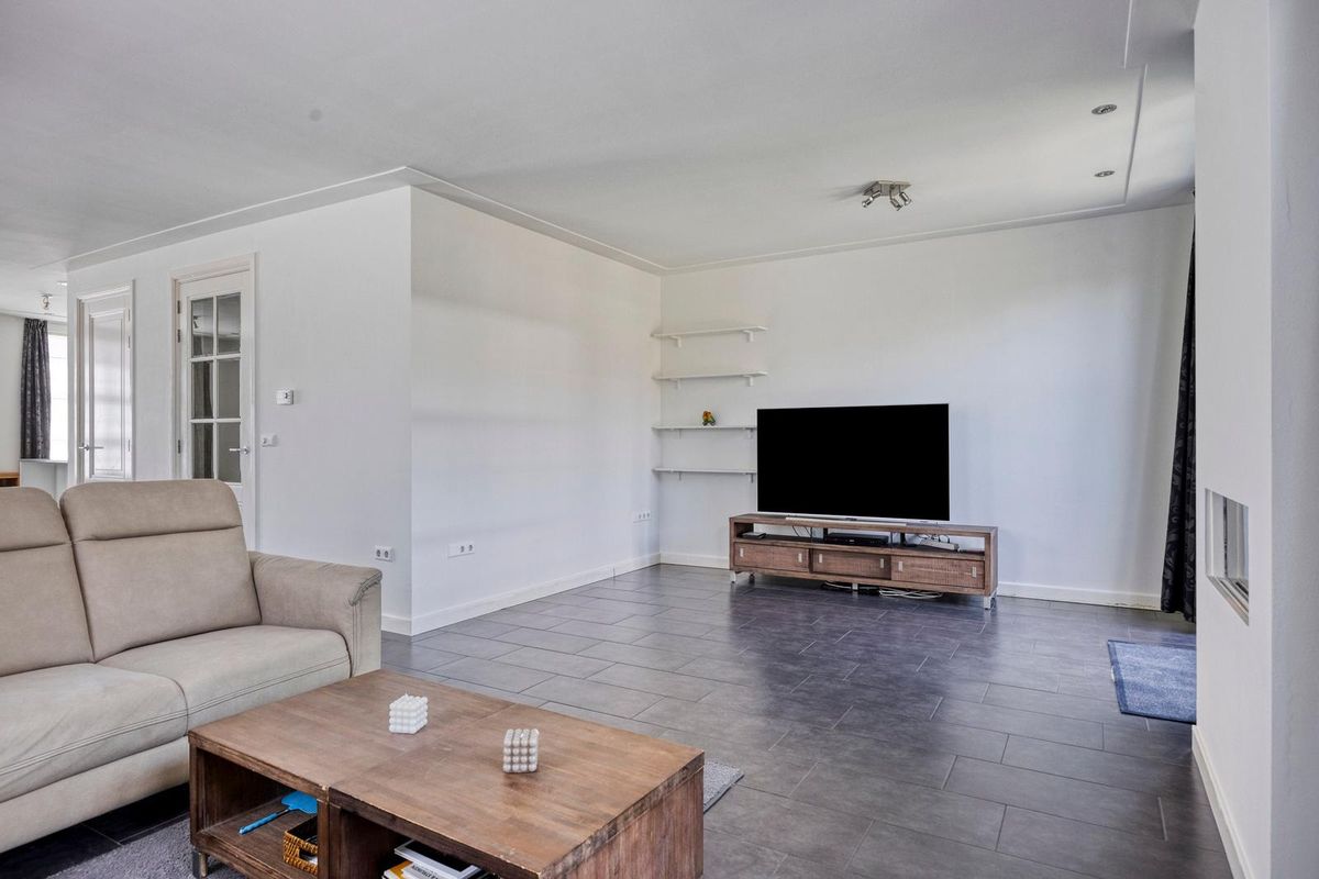 De living geniet dankzij grote raampartijen aan de voor- en achterzijde van de woning van veel daglicht. Deze ruimte is voorzien van een stenen vloer en een gashaard.