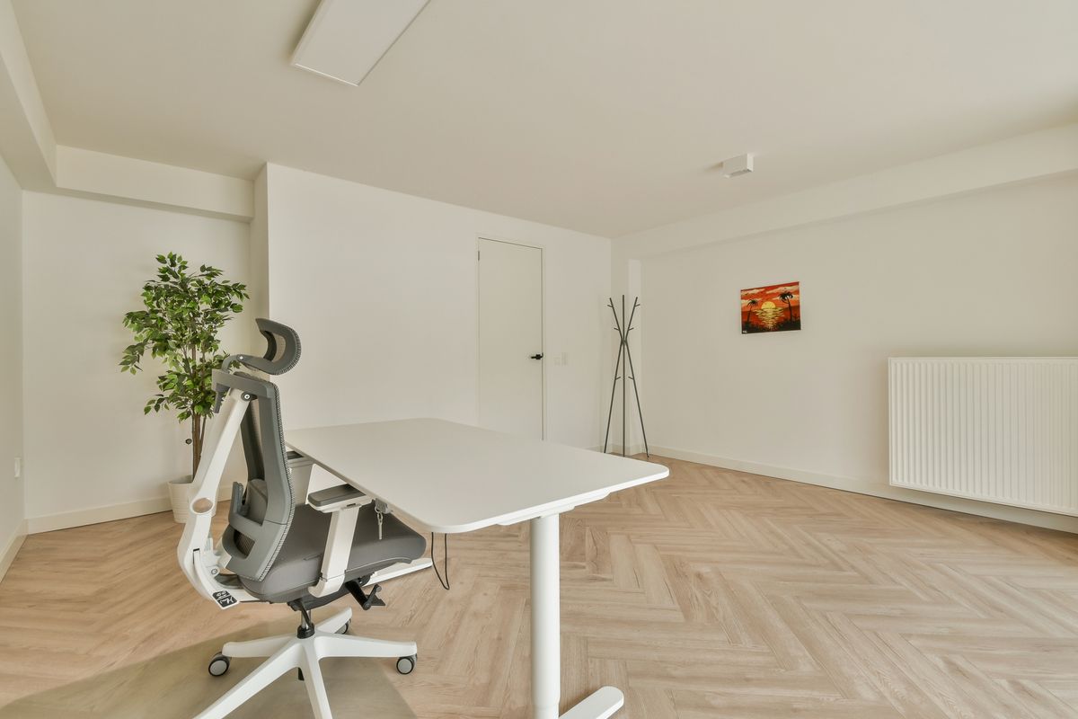 The entrance hall provides access to the staircase and a separate toilet. On this floor you will also find a spacious room, perfect as a home office, practice room, playroom, or extra bedroom. In addition, there is a second bathroom with shower and washbasin. From the rear bedroom you can step directly into the garden. The sunny back garden is neatly landscaped and offers space for a lounge area, dining table, or play area.
