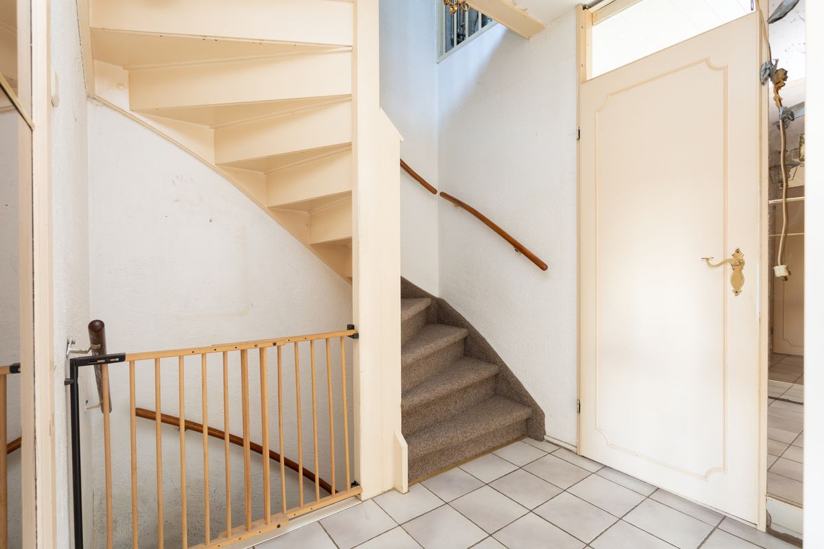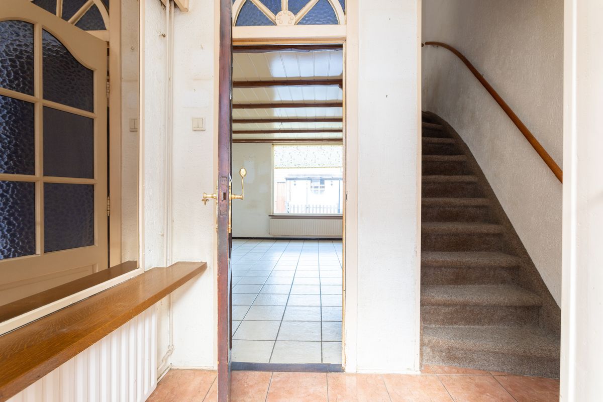 Entree woning; hal met meterkast; toiletruimte, trapopgang naar de eerste verdieping en toegang tot de woonkamer. Bij binnenkomst vallen direct de prachtige raampartijen op, heerlijk al dat licht. Aan de voorzijde is de keuken gelegen, deze is nog origineel.