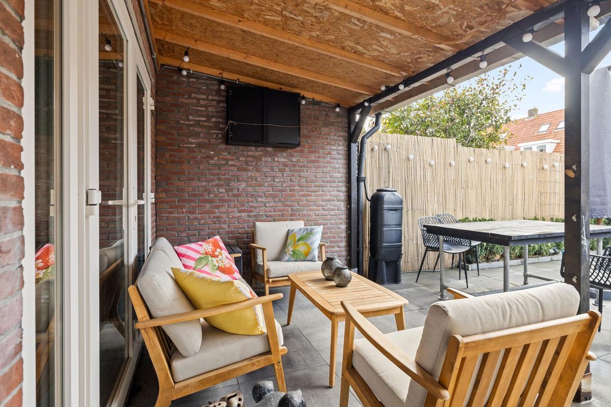In de zonnige achtertuin, die vrijwel pal op het zuiden ligt, kun je de hele dag genieten van de zon. Onder de veranda zit je heerlijk beschut – perfect voor lange zomeravonden of een kop koffie in het voorjaar. Achter in de tuin staat een vrijstaande houten berging en er is een achterom via de steeg. De achtertuin is in 2022 opnieuw aangelegd, inclusief het vernieuwen van de houten berging.