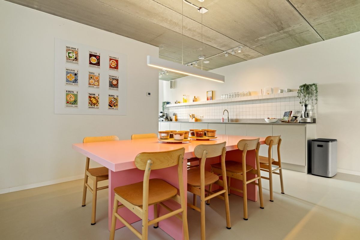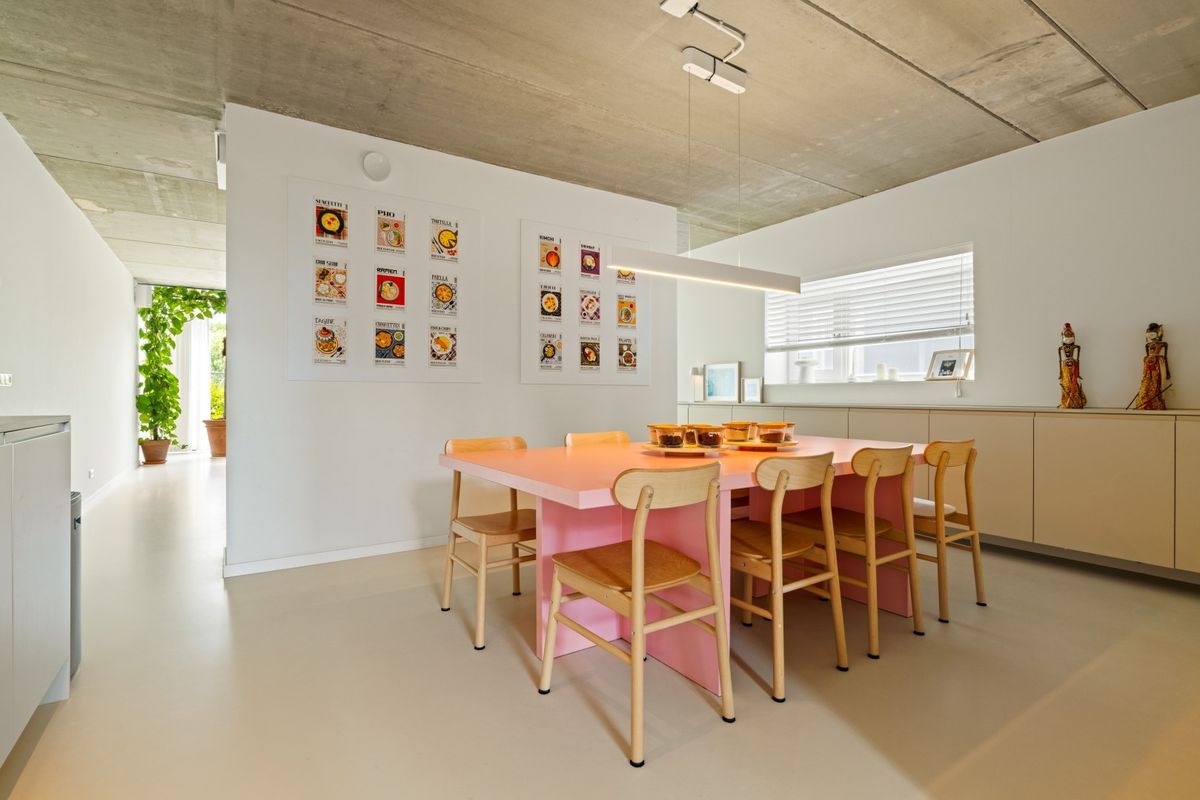 De eetkamer loopt naadloos over in de ruime woonkamer, waar de glazen achtergevel van maar liefst 4,45 meter hoog zorgt voor een adembenemende lichtinval en uitzicht op de zonnige tuin én het doorgaande vaarwater. Openslaande deuren verbinden binnen met buiten, ideaal voor zomerse dagen en lange avonden aan het water.