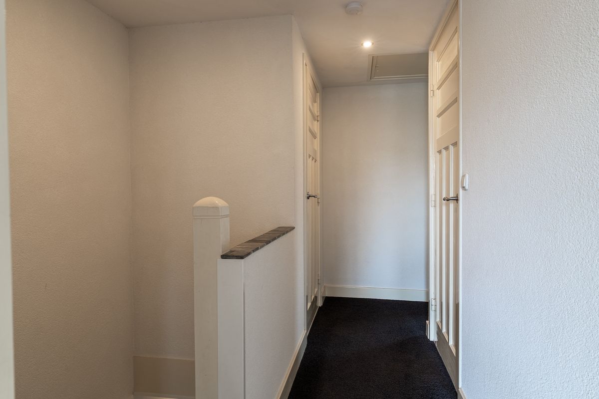 Overloop met vlizotrap de bergzolder, 3 slaapkamers en nette badkamer ingedeeld met ligbad, inloopdouche, wastafelmeubel en 2e toilet. Via de badkamer is het dakterras bereikbaar, waar je kunt genieten van een vrij uitzicht over de omgeving.