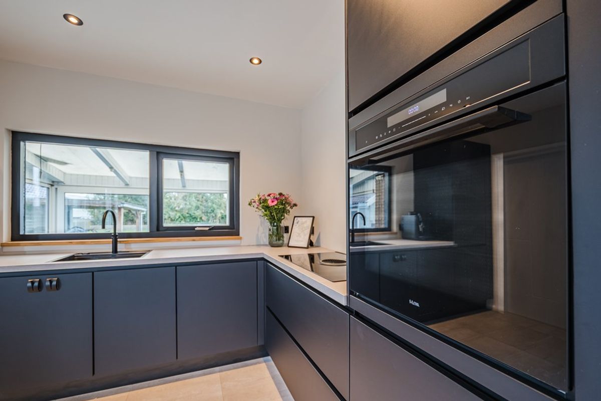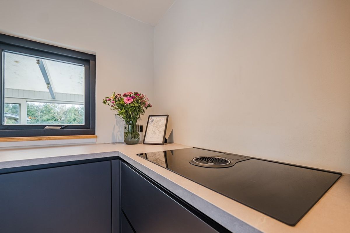 - Nieuwe, moderne, zwarte, open keuken voorzien van koelkast, combi-magnetron, Quooker, inductiekookplaat met ingebouwde afzuiging (Nicola Tesla) en vaatwasser. De kastfrontjes zijn voorzien van "anti-fingerprint".