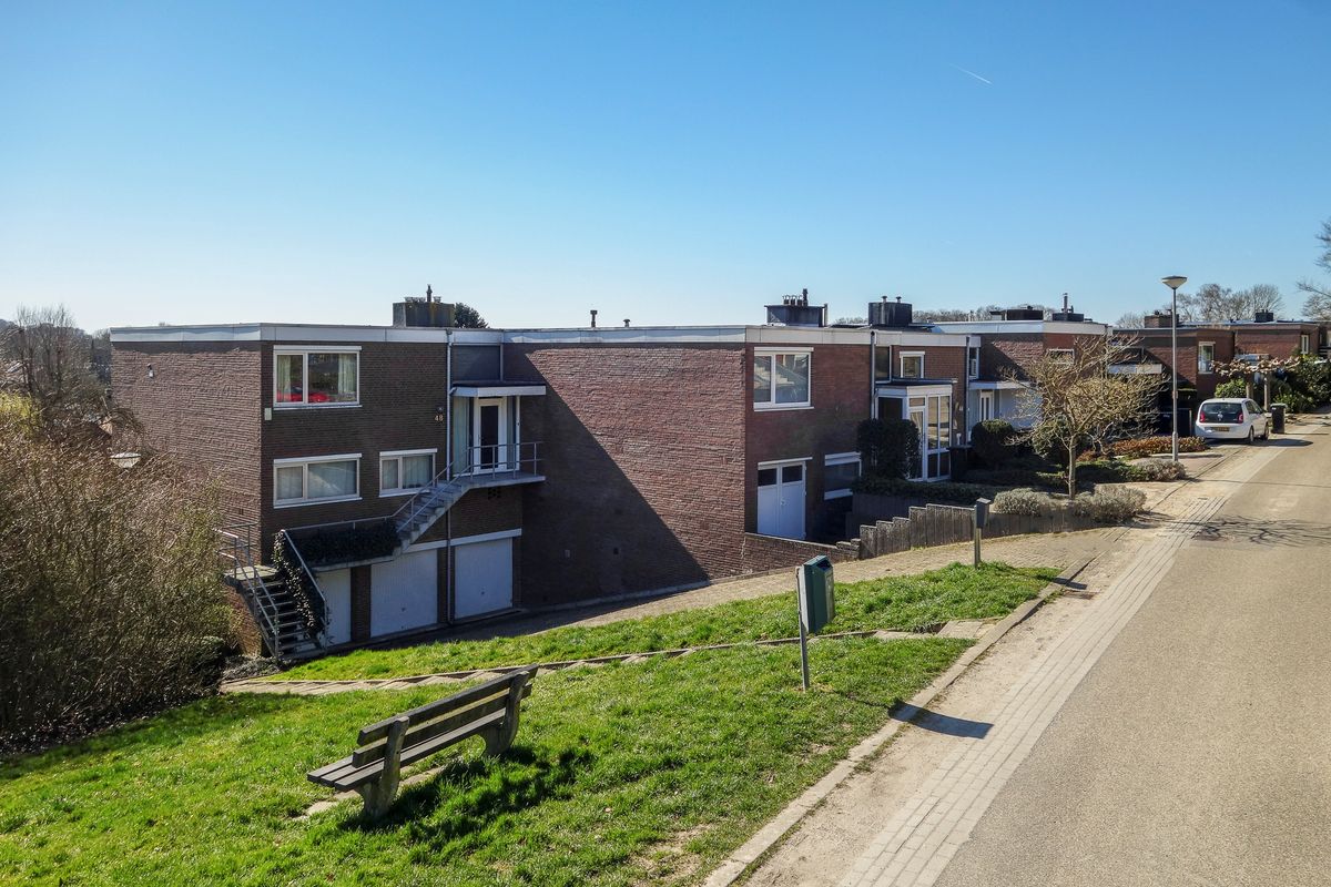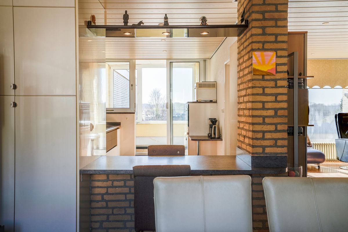 Via de entree met garderobekast en modern toilet kom je op de bovenste woonlaag. Hier bevindt zich een sfeervolle woonkamer met prachtige lichtinval en een panoramisch uitzicht over Oirsbeek en de omliggende natuur. De open keuken sluit hier mooi op aan en wordt op speelse wijze verbonden met de woonkamer via een charmant koffiebarretje. Een schuifpui geeft toegang tot het ruime terrasbalkon, waar je volop kunt genieten van het uitzicht en de buitenlucht.
