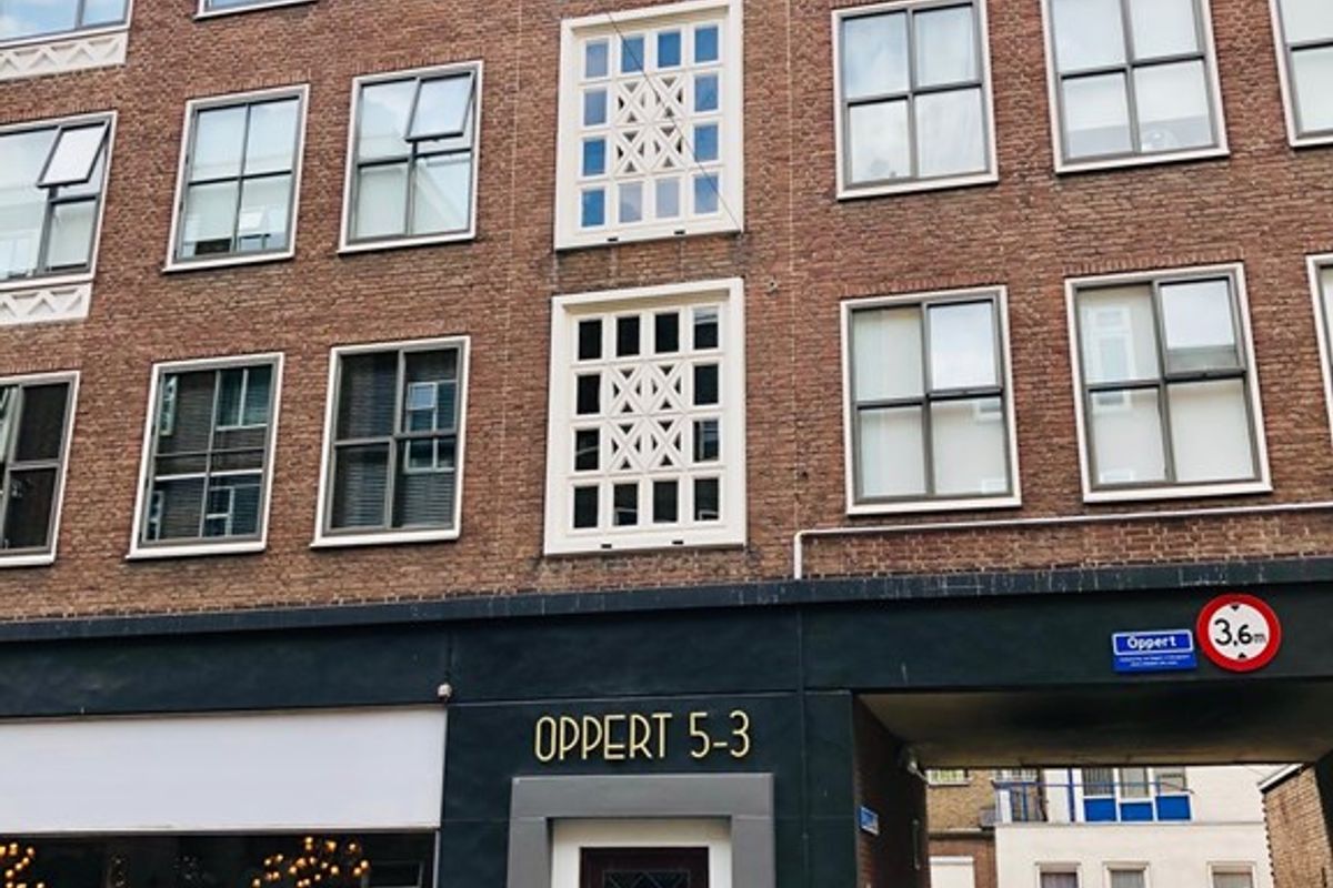 In the middle of the bustling center of Rotterdam, a stone's throw from the Koopgoot, Coolsingel and Stadhuisplein, is the 'Meent' shopping street, which is well known to everyone. On the corner of Meent, Oppert and Delftsevaart is a building that is a wonderfully authentic example of the Reconstruction architecture with 3 private, closed entrances at street level.