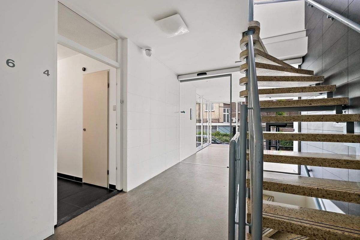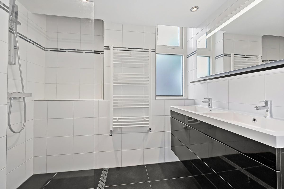 You reach the apartment on the first floor through a secure porch with an intercom system. Entering the apartment, you enter a long hallway that provides access to the bedroom. The luxurious bathroom is compact but efficiently designed and equipped with a walk-in shower, towel radiator, and double sink. There is a separate toilet. The luxurious open-plan kitchen, equipped with various built-in appliances, leads to the bright living room, from which the second bedroom is also accessible. The playful layout of the living room also makes it easy to create a home office in one of the alcoves. On the ground floor, there is a practical indoor storage room, ideal for bicycles or seasonal items.