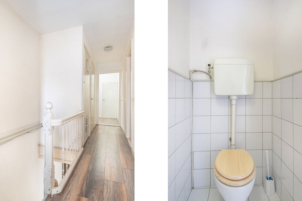 Via de voortuin betreed je de ruime hal met toegang tot de woonkamer en eetkamer, een royale leefruimte met veel lichtinval en een prettige indeling. De keuken bevindt zich aan de achterzijde en biedt toegang tot de achtertuin met overkapping. Verder is er een separaat toilet aanwezig op deze verdieping.