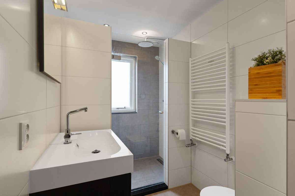 Overloop, twee ruime slaapkamers (mogelijkheid tot 3 slaapkamers) en een moderne, luxe badkamer, helemaal van deze tijd voorzien van een wastafelmeubel, douchecabine en 2e toilet.