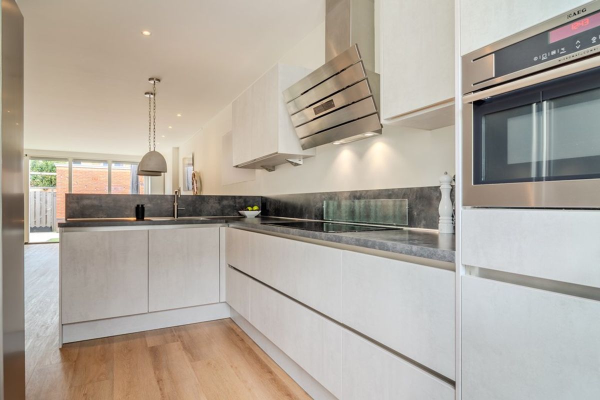 Via de voortuin kom je bij de entree van de woning waar je de hal met meterkast in stapt. De hal geeft toegang tot het toilet, de trapopgang naar de 1e verdieping en de woonkamer. Het toilet is deels betegeld en voorzien van een wandcloset en fonteintje. De lichte woonkamer (5.10 x 7.91) grenst aan de achtertuin. De open keuken (2.49 x 3.78) is gelegen aan de voorzijde en vernieuwd in 2017. De keuken is voorzien van diverse inbouwapparatuur zoals een inductiekookplaat, afzuigkap, combi-oven, Quooker en vaatwasser. De Amerikaanse koel-vriescombinatie is ter overname beschikbaar. De gehele begane grond is voorzien van een nette pvc-afwerkvloer met vloerverwarming. Via de achterdeur kom je in de achtertuin (7.96 x 5.20) op het noordoosten. Deze heeft een stenen berging (3.02 x 2.45) en achterom.