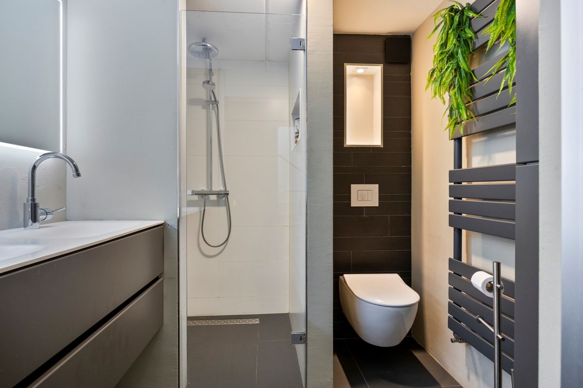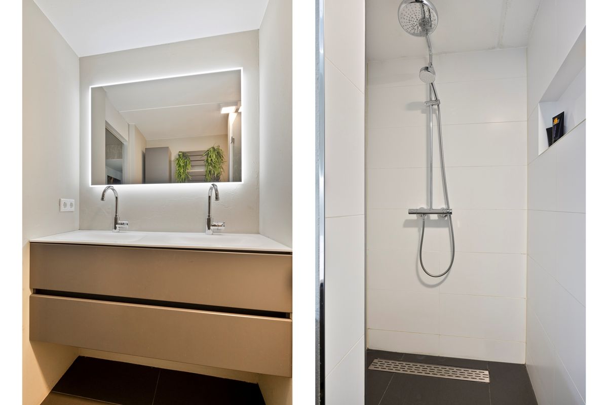 overloop, 3 slaapkamers (voorheen 4) waarvan de ouderslaapkamer voorzien van een ruime inloopkast, moderne badkamer met dubbele wastafel met meubel, inloopdouche, hangtoilet en vloerverwarming.