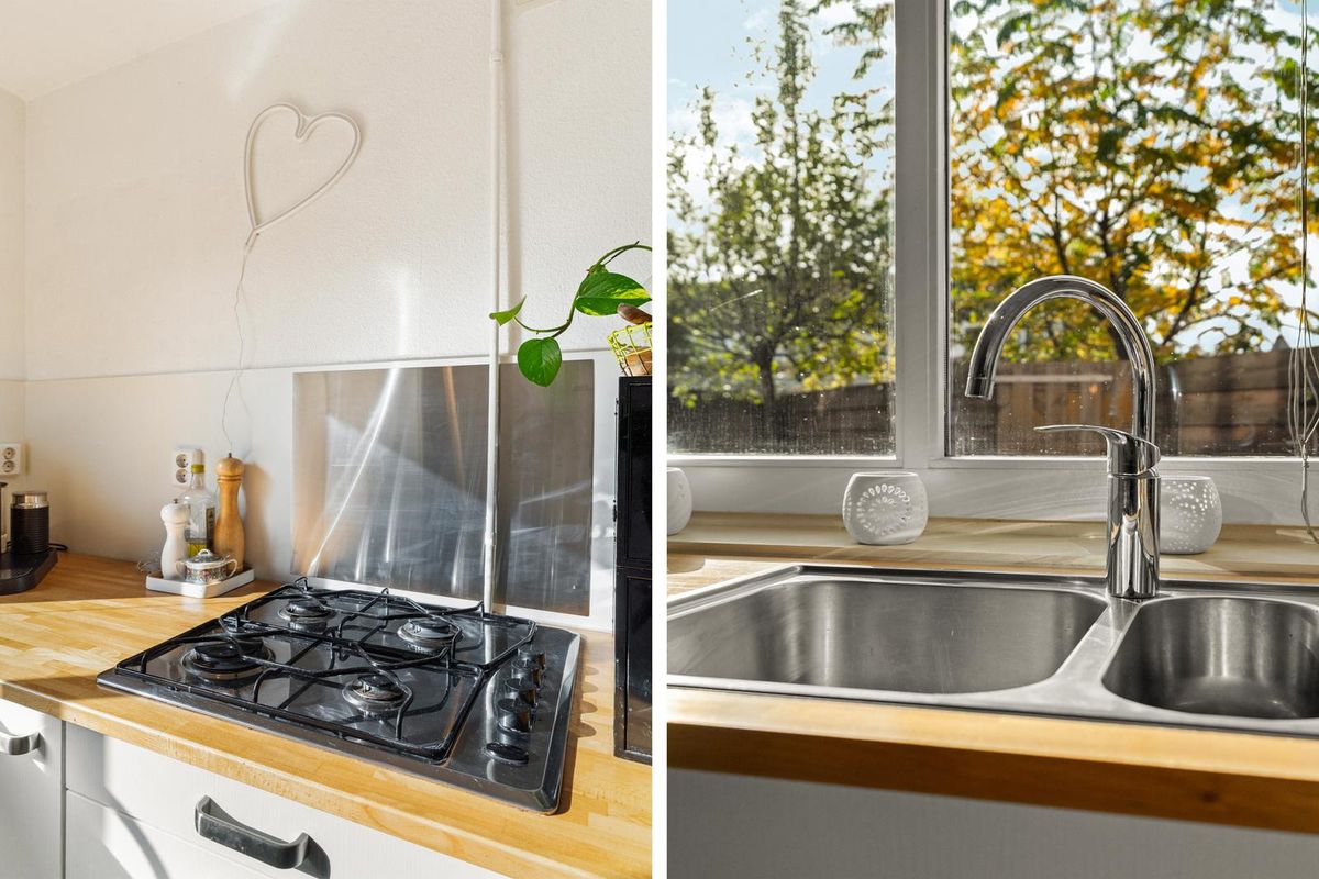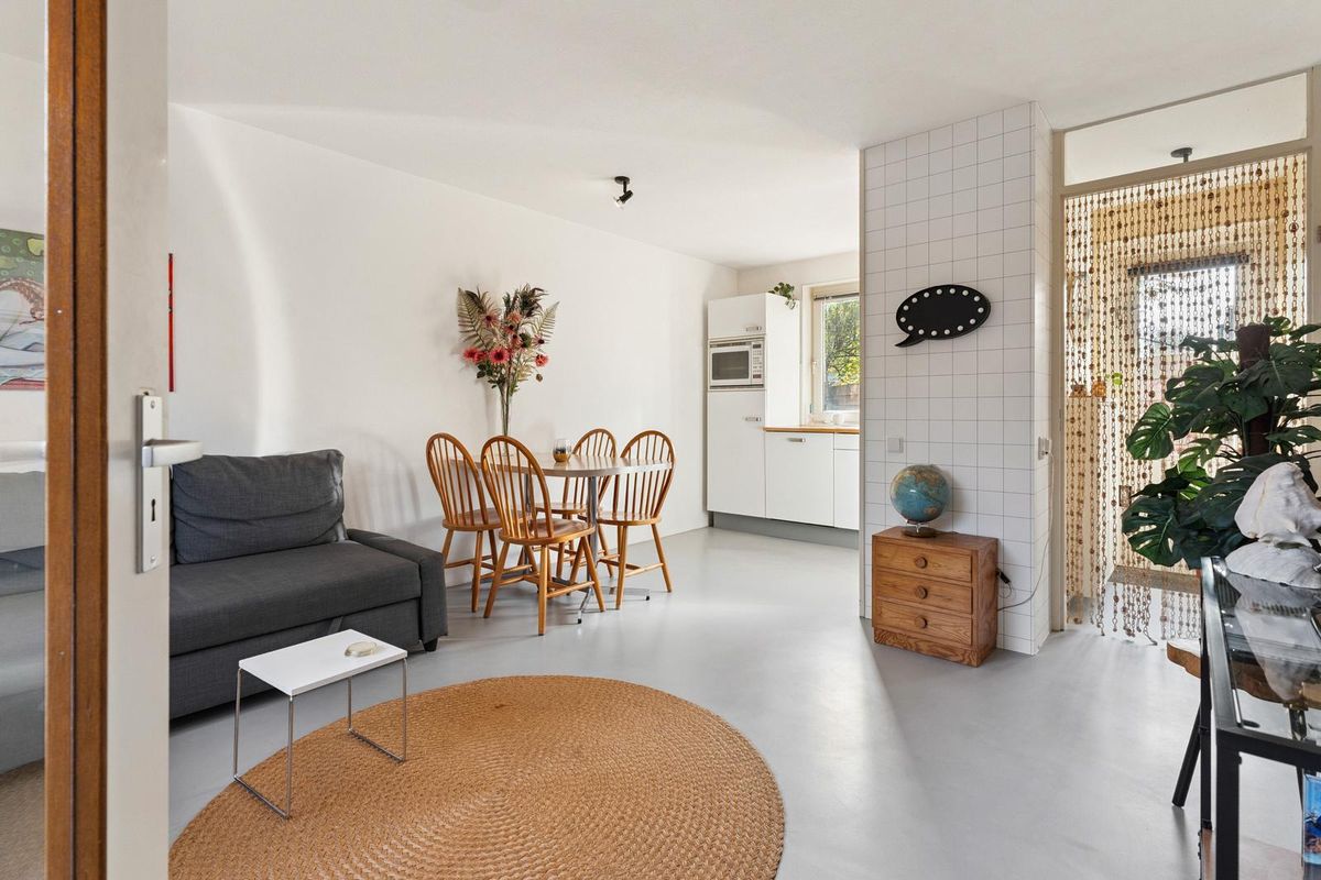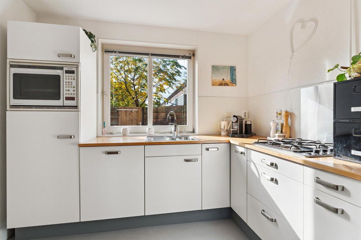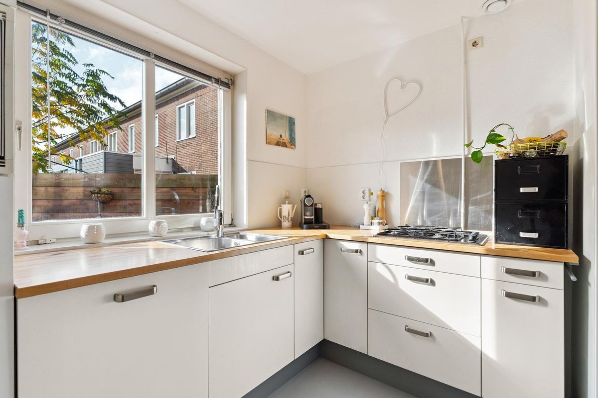 Via de entree bereik je de lichte woonkamer met open keuken. De woonkamer is voorzien van een gezellige eethoek en comfortabele zithoek. De ramen aan voor-en-achterzijde zorgen voor veel natuurlijk lichtinval. De keuken is volledig uitgerust met een 4-pits gasfornuis, combi-oven, vaatwasser, koelkast met vriesvak en voldoende opbergruimte. De woning beschikt over twee slaapkamers, waarvan de hoofdslaapkamer ruim is opgezet met een tweepersoonsbed en voldoende kastruimte. De tweede kamer kan worden gebruikt als logeerkamer, kantoor of kinderkamer. De badkamer is netjes afgewerkt en voorzien van een douche, wastafel, handdoekradiator en toilet.