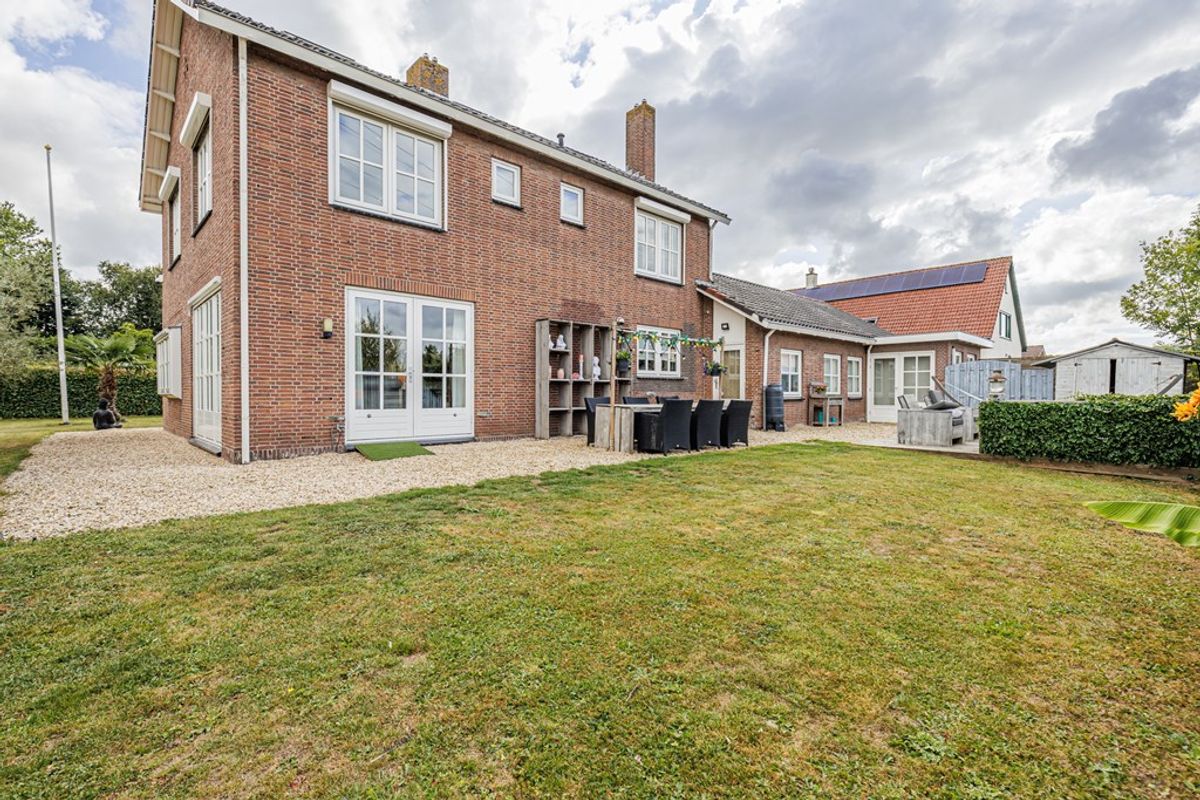 Daarnaast is er een tuinhuis met buitenkeuken, een sfeervolle plek om samen te komen, te barbecueën en volop te genieten van het buitenleven. Het grote grasveld biedt veel ruimte om te spelen en te ontspannen, met rondom een vrij en beschut gevoel.