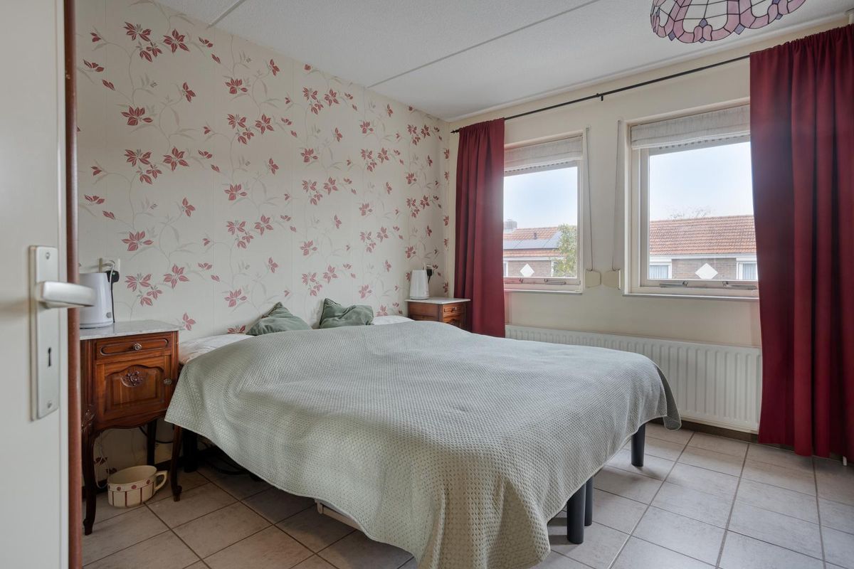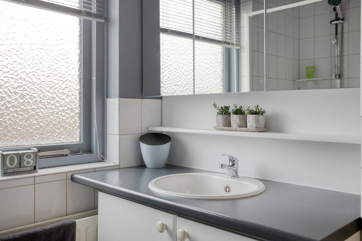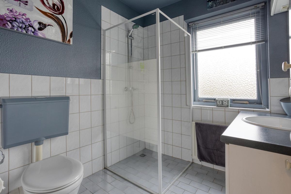 Op de eerste verdieping leidt de overloop naar twee slaapkamers, waarvan één extra ruim en gelegen aan de voorzijde van de woning. De badkamer is praktisch ingericht met een douche, toilet en wastafel.