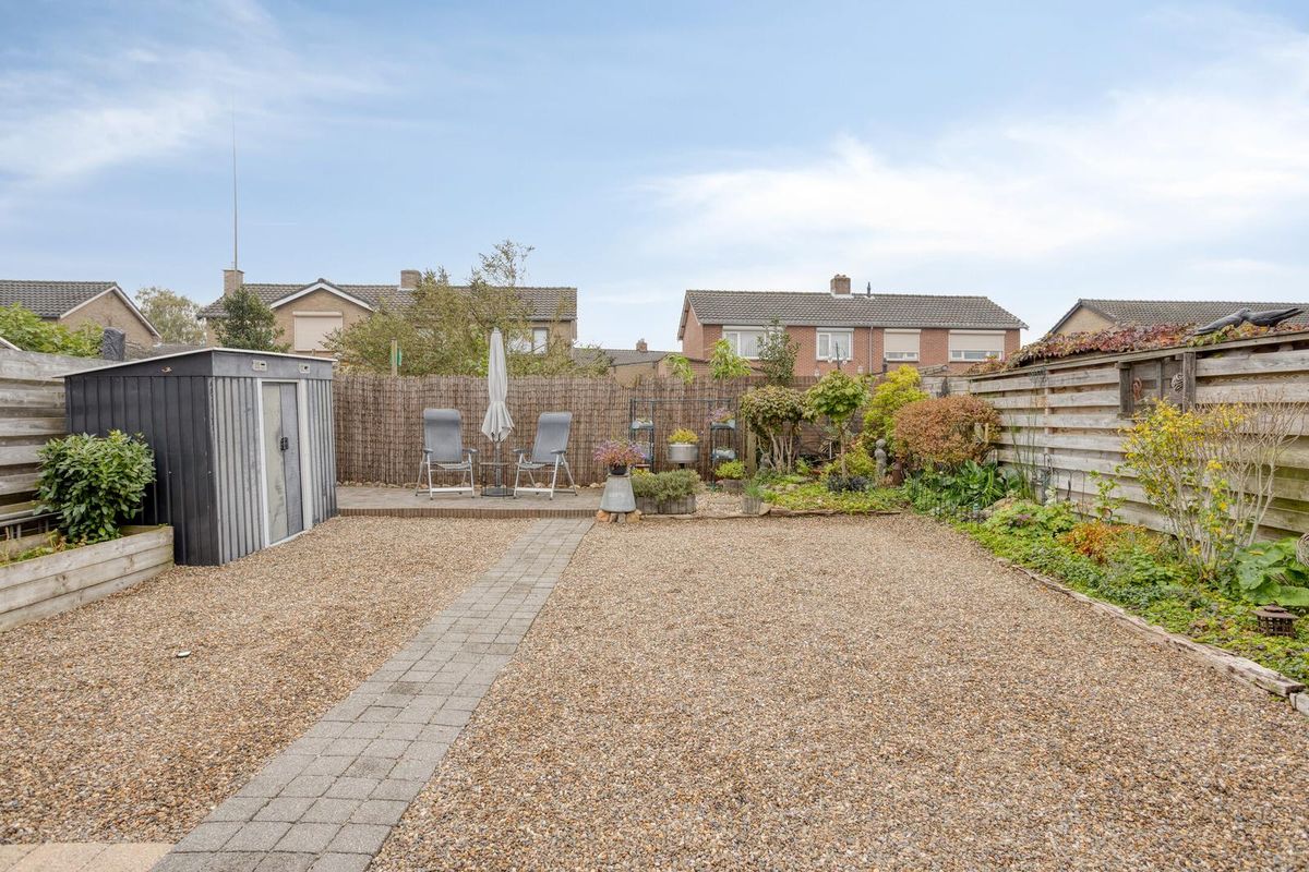 De achtertuin ligt op het zuiden, wat garant staat voor veel zonuren. Er is een gezellige overkapping direct aan de woning, waar je heerlijk beschut kunt zitten. De tuin is verzorgd aangelegd met nette borders, een houten berging en een vrije achterom. Dankzij het onderhoudsarme karakter heb je hier vooral tijd om te genieten. Ook de ruime garage is vanuit de tuin te bereiken en biedt plaats aan zowel de auto als extra opslag. Daarnaast is er een aansluiting voor witgoed aanwezig.