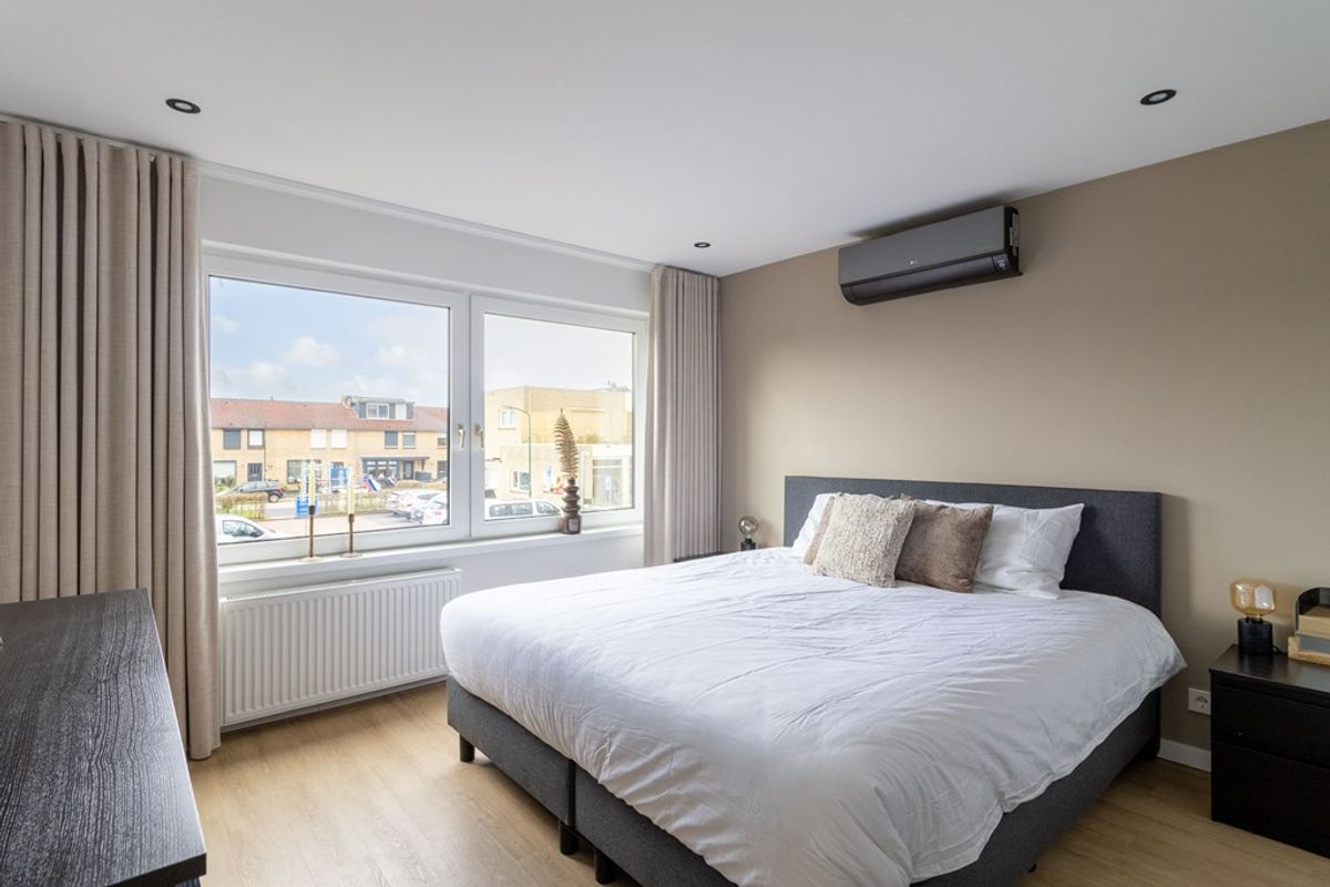 Ook boven is de woning verrassend compleet. De master bedroom is royaal van opzet en uitgevoerd met een inloopkast en airco, wat het geheel net dat extra stukje comfort geeft. Ook hier merk je dat er goed is nagedacht over gebruiksgemak en afwerking. Aan de achterzijde ligt bovendien een leuke tuin met een flinke berging, waardoor je ook buiten beschikt over een fijne en praktische ruimte.