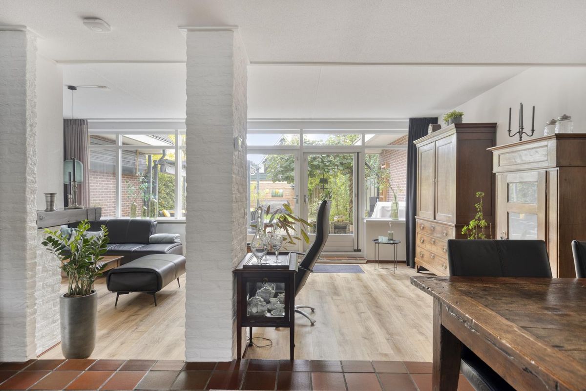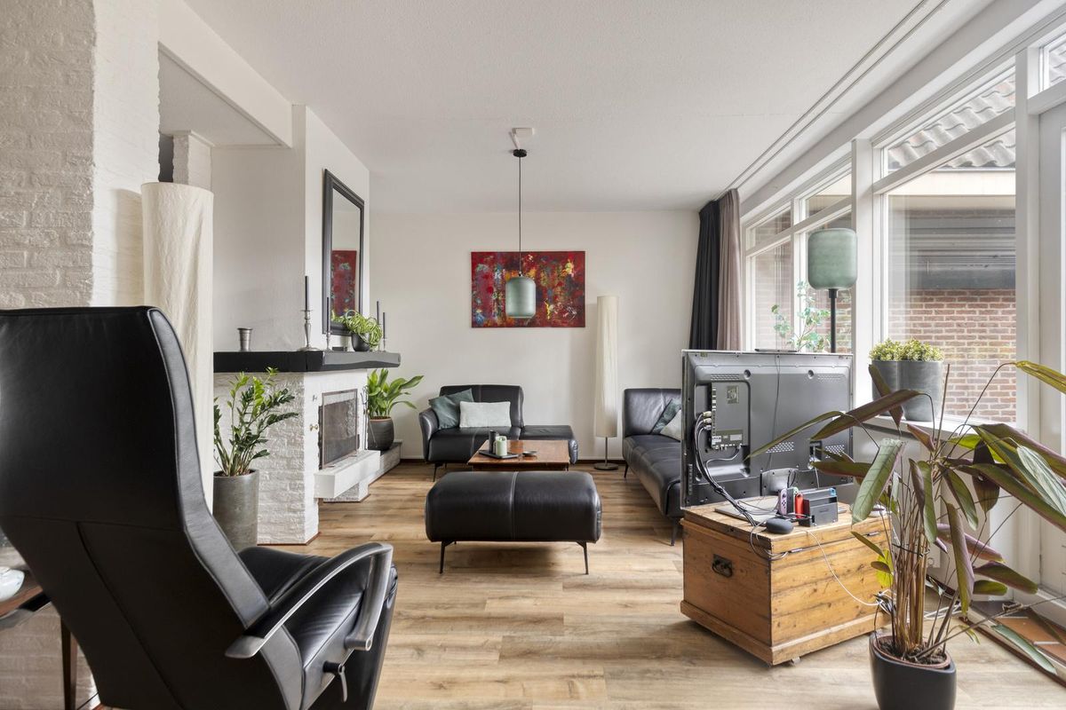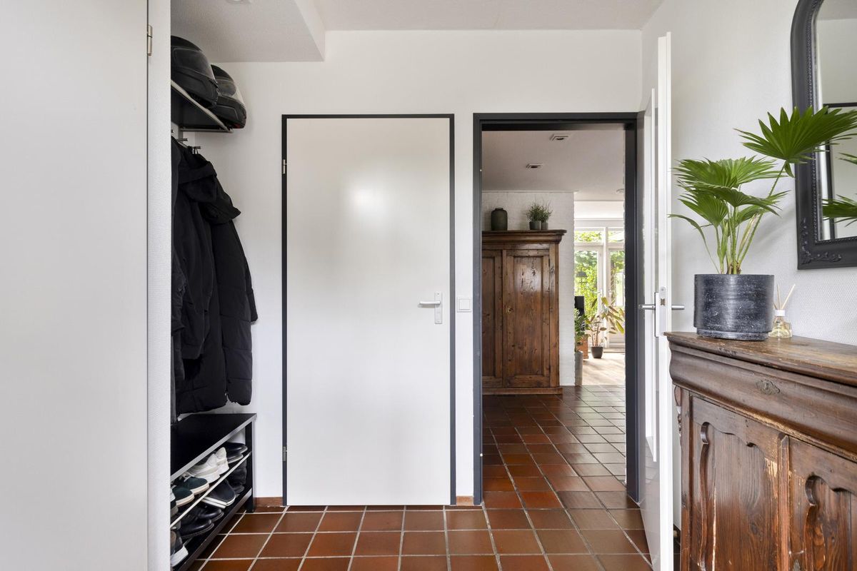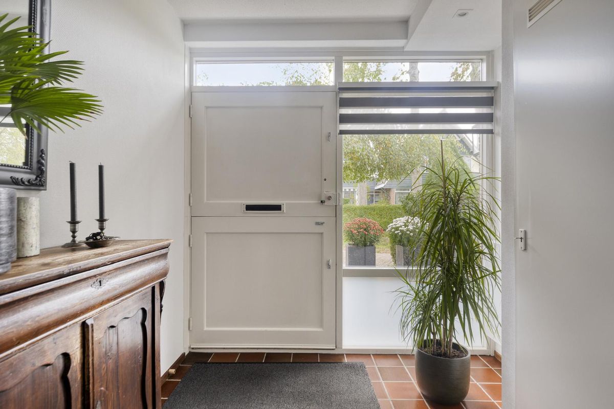 Via de entree aan de voorzijde wordt de hal bereikt. De hal is ruim en biedt plaats aan de meterkast en het toilet. De hal leidt vervolgens naar de woonkamer. De woonkamer biedt het speelse karakter dat bij een woning uit deze bouwperiode hoort. Met name de zitkuil en de indeling van de zithoek rondom de open haard zijn hier kenmerkende voorbeelden van. Daarnaast zorgen de grote raampartijen aan zowel de voor- als achterzijde voor veel natuurlijke lichtinval. De woonkamer is hiermee een uiterst fijne plaats om te verblijven.