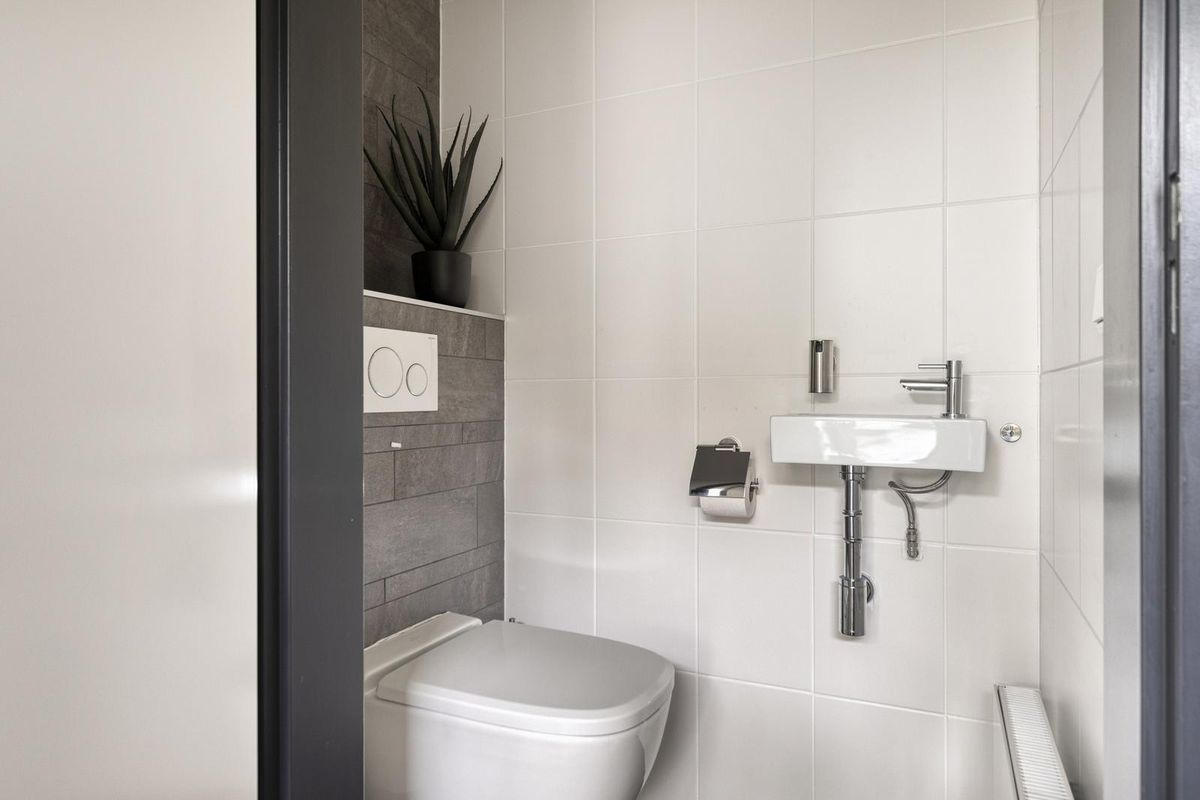 Aangrenzend aan de keuken is de bijkeuken gelegen. De bijkeuken biedt u veel praktische bergruimte en vormt de doorgang naar de inpandige garage. De bijkeuken is tot slot uitgerust met een extra keukenblok met inbouwapparatuur.