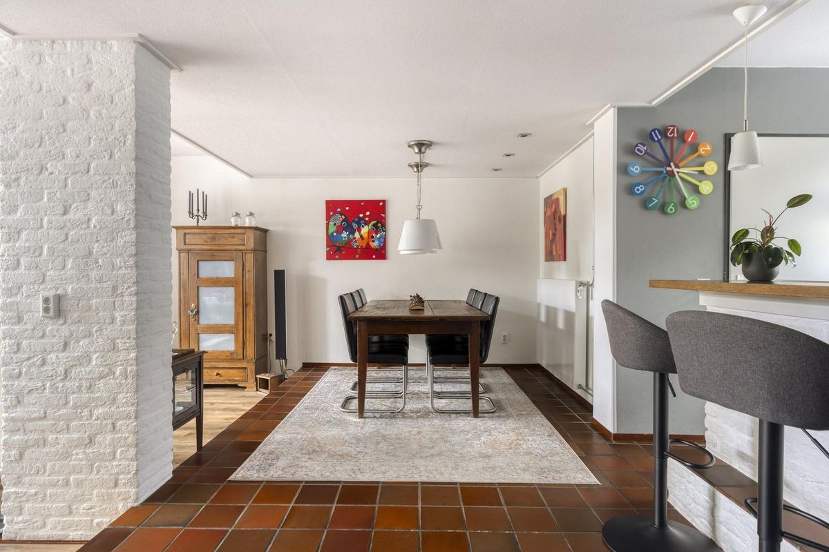Het eetgedeelte is tussen het zitgedeelte en de keuken gelegen en biedt daarmee altijd contact met de mensen in de woonkamer en de keuken.