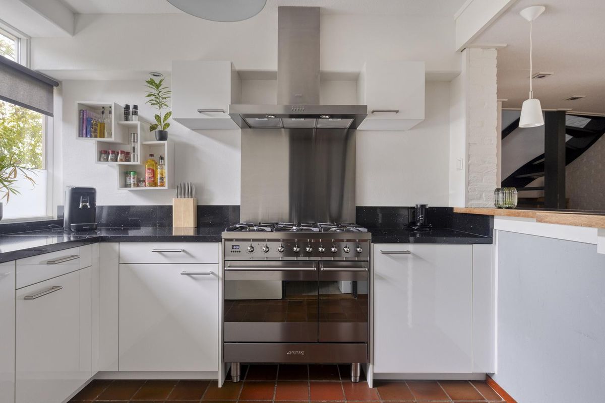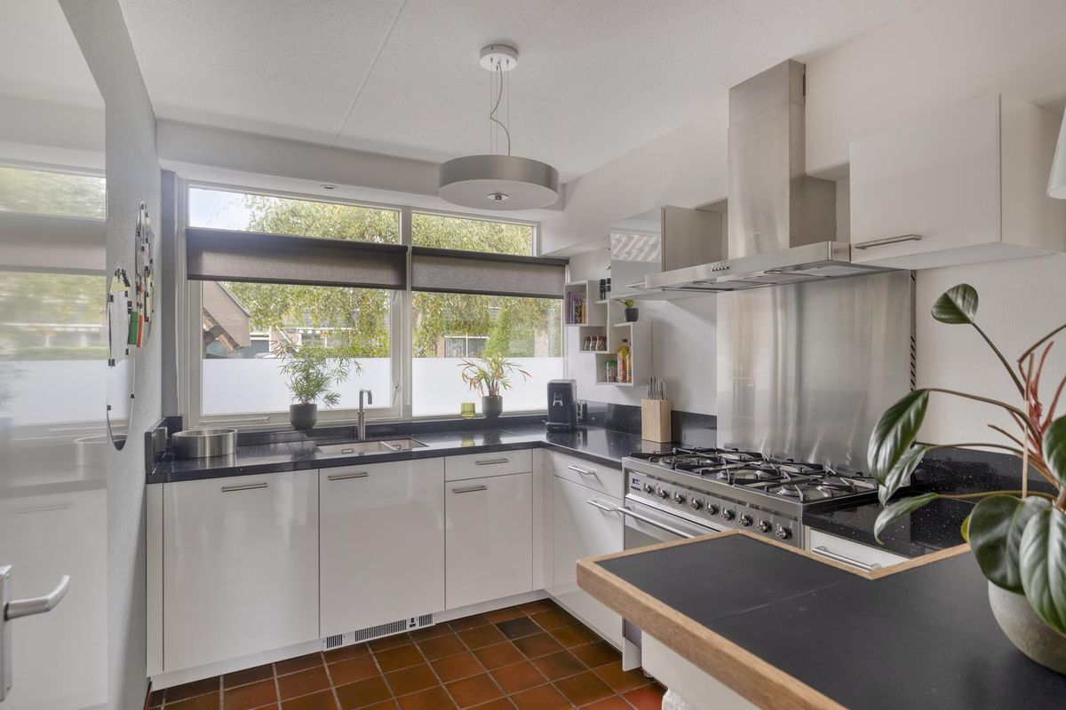 De keuken is aan de voorzijde van de woning gelegen en kijkt uit over de straat. De keuken is in L-vorm opgesteld en is in het recente verleden nieuw geplaatst. De keuken is uitgerust met een koelkast, gasfornuis met oven, vaatwasser, afzuigkap en Quooker. Door de opstelling is er veel werk- en kastruimte aanwezig.