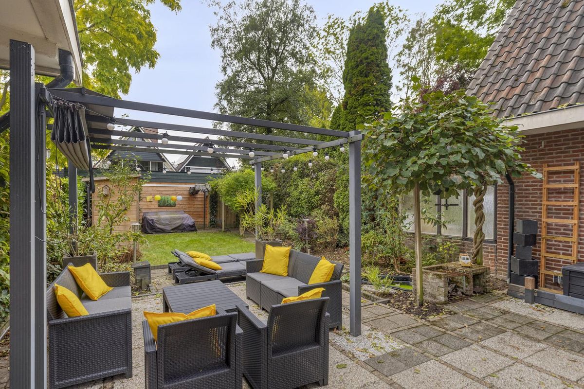 Via de tuindeur wordt de heerlijke achtertuin bereikt. De woning is op een ruim perceel van 270m2 eigen grond gelegen en beschikt over een voortuin, oprit en diepe achtertuin. De achtertuin is fraai en biedt u een combinatie van groen en plekken waar u heerlijk in de zon kunt zitten. De achtertuin is op het zuiden gelegen en biedt daarmee de best denkbare zonligging. De achtertuin beschikt over een vrije achterom.