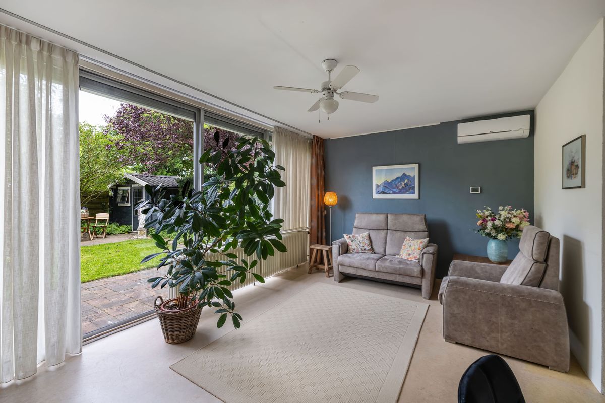 - Woonkamer voorzien van airco, veel lichtinval door de grote raampartij, schuifpui naar de achtertuin en buiten jaloezieën