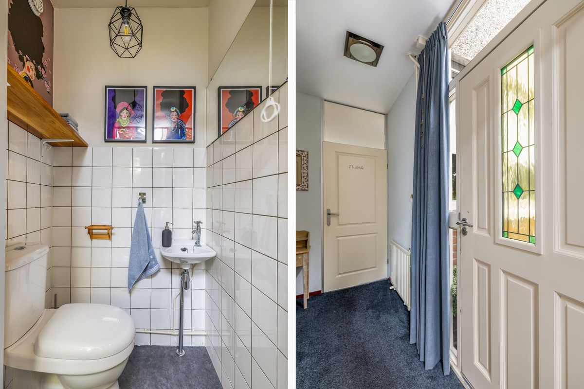 - Hal met toilet, (vernieuwde) meterkast, toegang naar berging/bijkeuken/thuiswerkplek en toegang tot de woonkamer