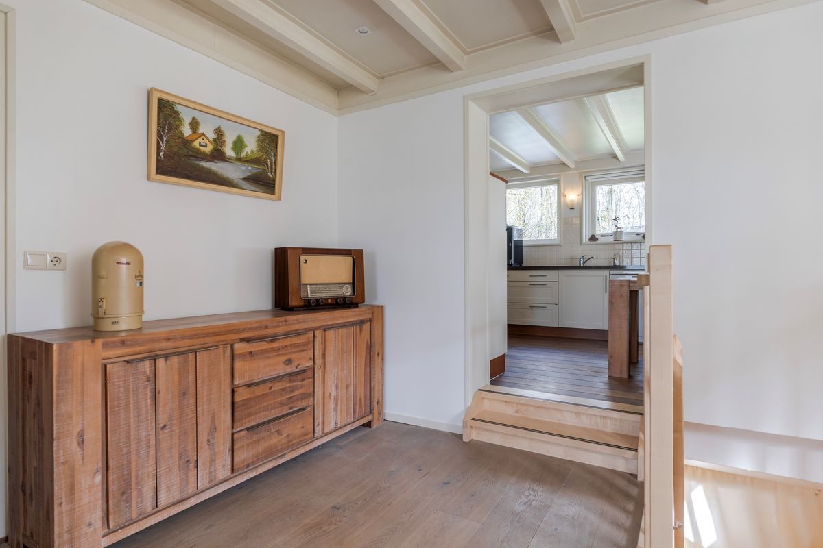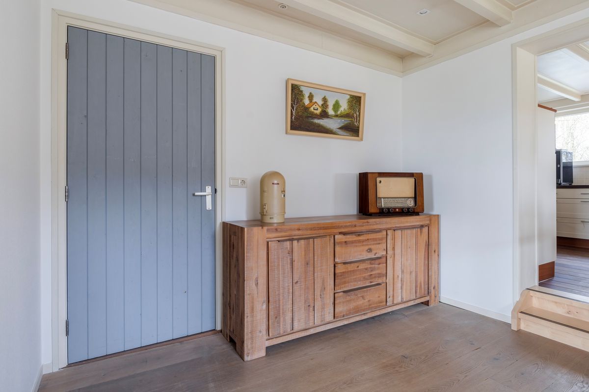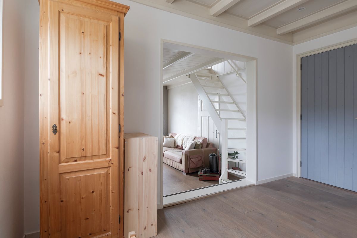 Begane grond: Bij binnenkomst in de woning valt direct de lange entree op: een mooie binnenkomer die toegang geeft tot diverse ruimtes. Aan de linkerzijde bevindt zich de badkamer, voorzien van een hoekbad, doucheruimte en wastafel – een fijne plek om tot rust te komen. In de hal zijn bovendien twee praktische inbouwkasten en een apart toilet, compleet met hangend closet, urinoir en fonteintje – comfortabel én netjes afgewerkt. Vanuit de hal heb je toegang tot de charmante opkamer – een sfeervolle ruimte die je uitnodigt om te lezen, werken of gewoon te genieten van het uitzicht. Via deze kamer leidt een trap je naar het souterrain, een verrassende extra die volop mogelijkheden biedt. Aan de voorzijde van het huis ligt de woonkamer, waar de grote ramen zorgen voor een prachtig vrij uitzicht over de landerijen. Hier geniet je van licht, lucht en ruimte – en op koudere dagen van de knusse houtkachel. Ook vind je hier de trap naar de verdieping. Aan de andere zijde van de opkamer bevindt zich de ruime woonkeuken. De keukenopstelling biedt alle ruimte voor koken, leven en gezellig samen zijn.