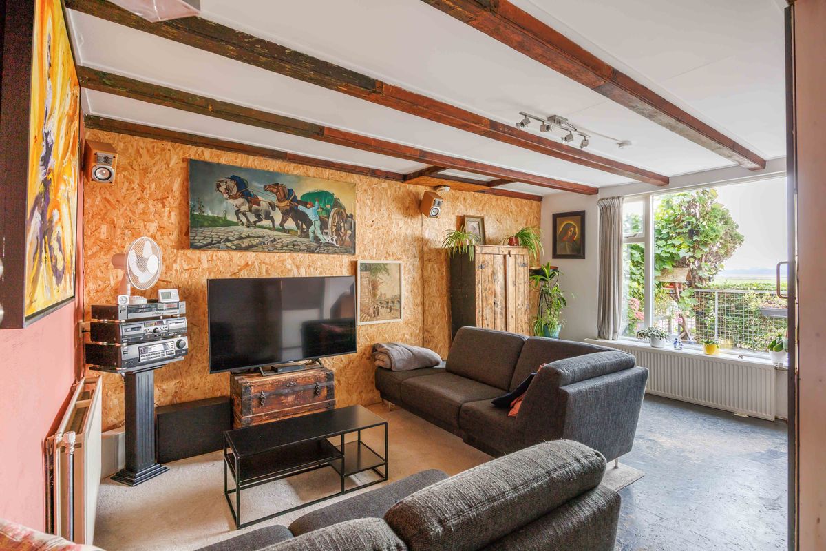 Achter de bescheiden gevel schuilt een woning vol karakter en mogelijkheden. De woonkamer ademt warmte dankzij de houten balken, grote raampartijen met HR++ beglazing en een authentieke sfeer. Aansluitend bevindt zich een eetkamer met houtkachel – een heerlijke plek om lange avonden door te brengen – met boven de ruimte een sfeervolle vliering, ideaal als werk- of leeshoek met prachtig uitzicht over de omgeving.