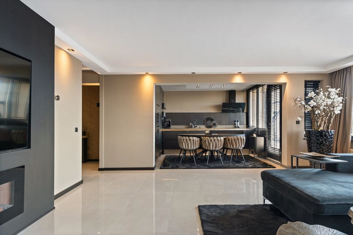 Zodra je binnenkomt, voel je het meteen: dit is geen standaard appartement. Dit is een plek waar over alles is nagedacht. De ruime woonkamer is het perfecte voorbeeld. De materialen, kleuren en details sluiten naadloos op elkaar aan en de prachtige cinewall maakt het tot een ultieme relaxruimte. Een plek waar je elke dag thuiskomt in luxe.