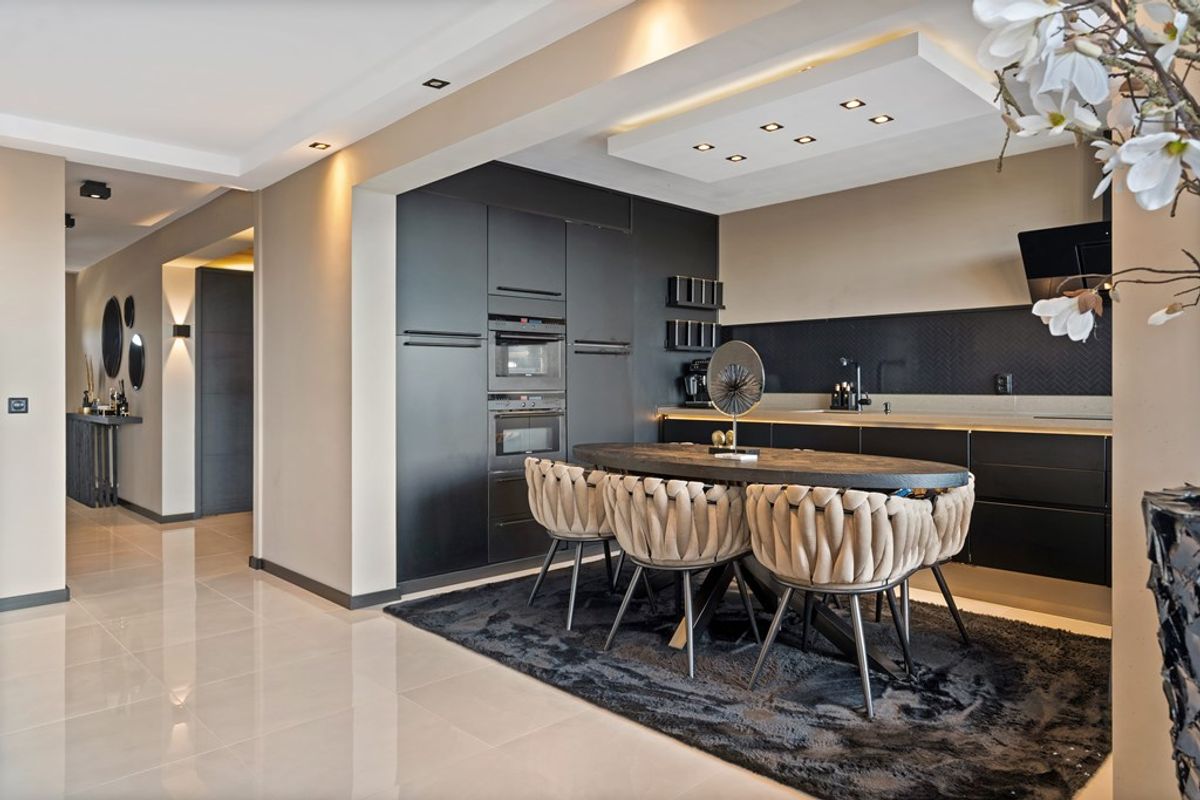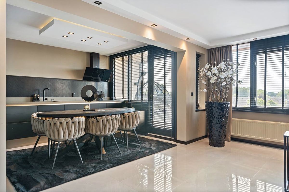 De open keuken is een eyecatcher op zichzelf. Hoogwaardige apparatuur, rijke materialen en een stijl die je normaal alleen in exclusieve woonbladen ziet. Hier kook je niet zomaar—hier ervaar je pure kwaliteit.