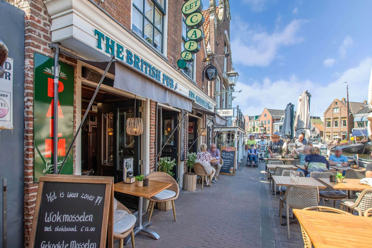 Momenteel is de begane grond in gebruik als een sfeervolle British pub, compleet met twee volwaardige barren, een nieuwe keuken en sanitaire voorzieningen aan zowel de voor- als achterzijde. De pub ademt sfeer, karakter en gezelligheid, een plek waar zowel locals als toeristen graag samenkomen. Dankzij het terras aan het water genieten gasten hier van het levendige uitzicht op passerende boten en het centrum van Lemmer.