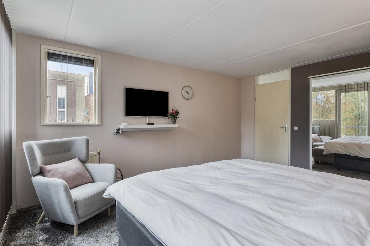 * Slaapkamer I (master bedroom) van ca. 4.89 x 4.08 gelegen aan de voorzijde voorzien van vloerbedekking en Frans balkon.