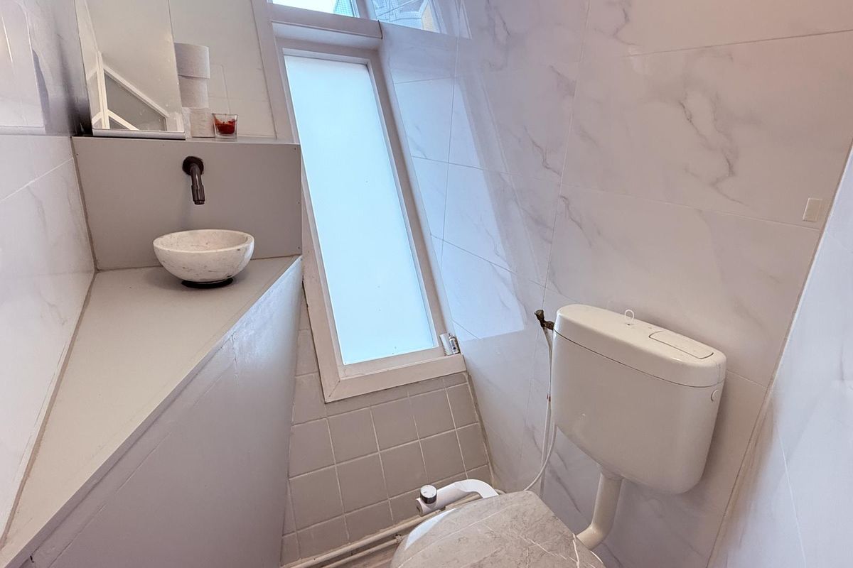 - Luxe badkamer met vrijstaande ligbad, douche, wastafelmeubel en aansluiting voor een sanibrailleur toilet (aanwezig en eventueel ter overname)