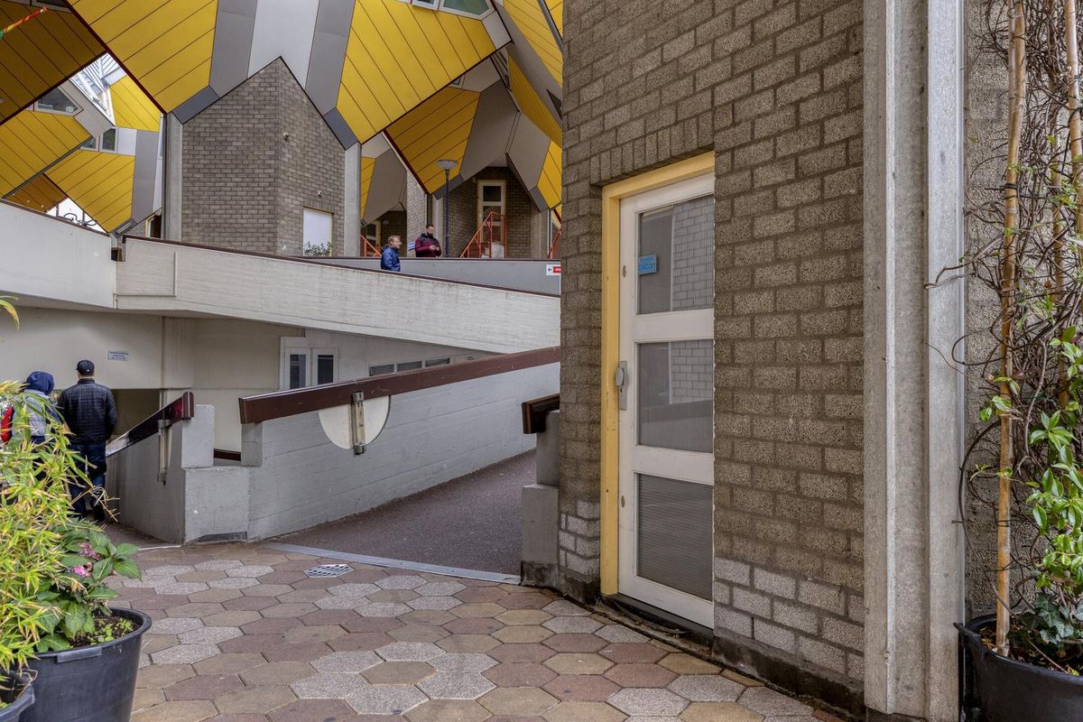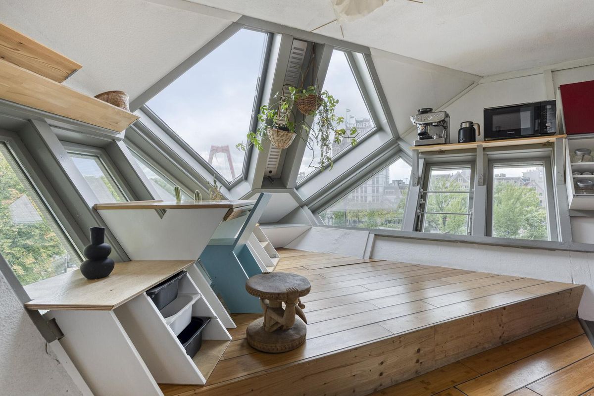 En ja – de indeling is net zo bijzonder als de buitenkant. Maar goed om te weten: deze woning beschikt over drie ruime slaapkamers, een lichte woonkamer én een fijne sfeer. Via het Blaakplein of de Oude Haven loop je zo naar je eigen voordeur, gelegen in de “stam” van deze beroemde kubus.