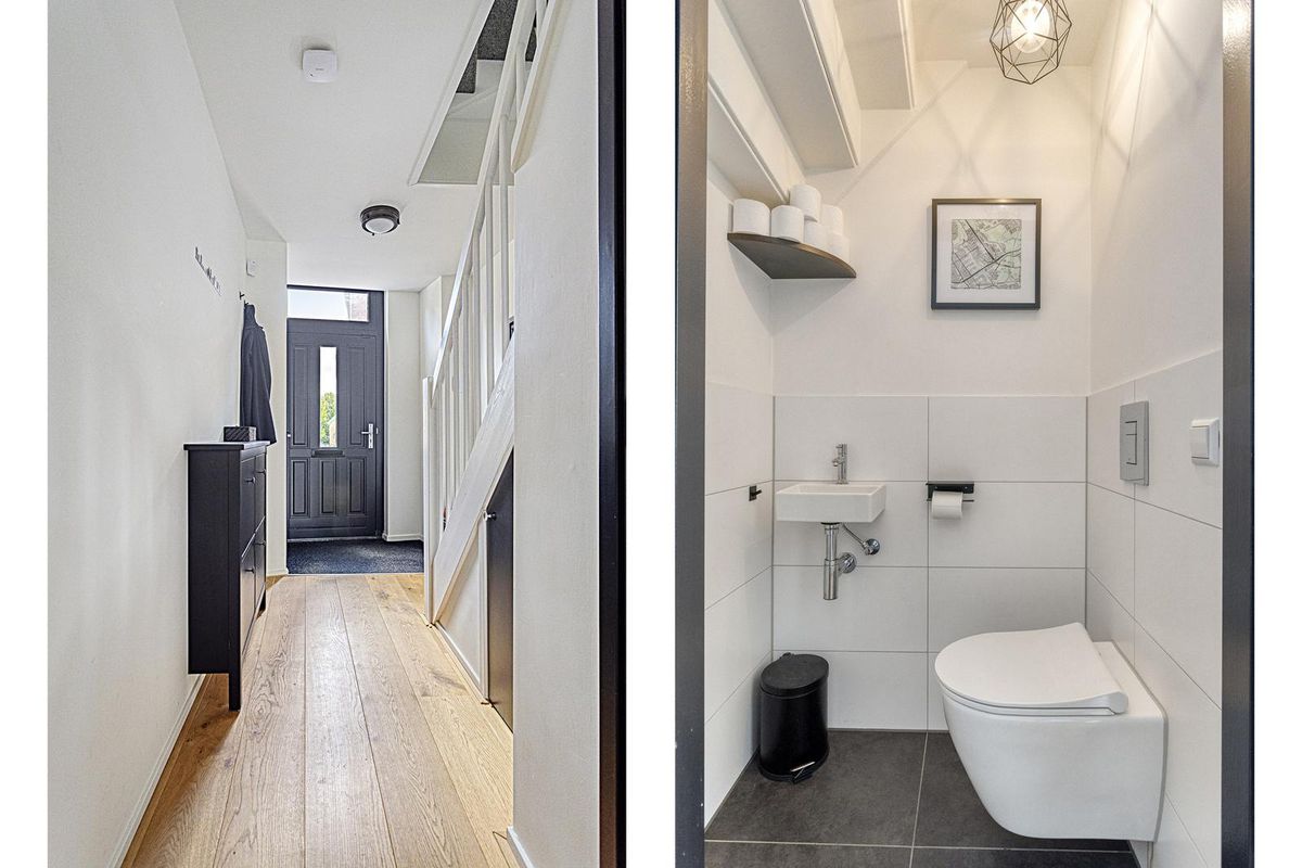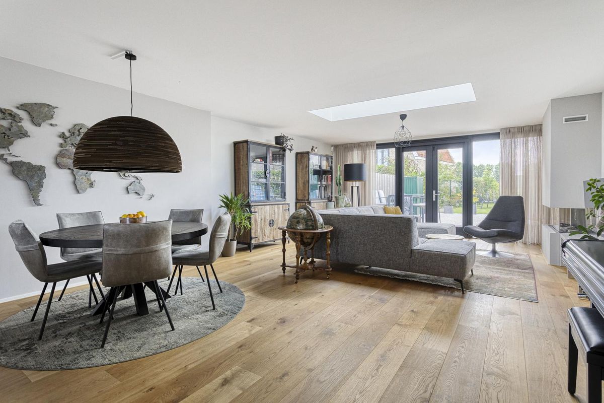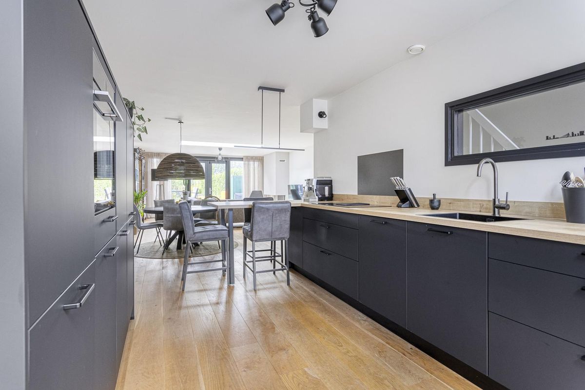 Via de entree met garderobe en toilet komt u binnen in de woning. Aan de voorzijde bevindt zich de moderne open keuken met schiereiland en hoogwaardige inbouwapparatuur. De keuken staat in directe verbinding met de lichte woonkamer met sfeervolle gashaard. Aan de achterzijde zorgen openslaande deuren voor een naadloze overgang naar de tuin – ideaal om binnen en buiten met elkaar te verbinden.