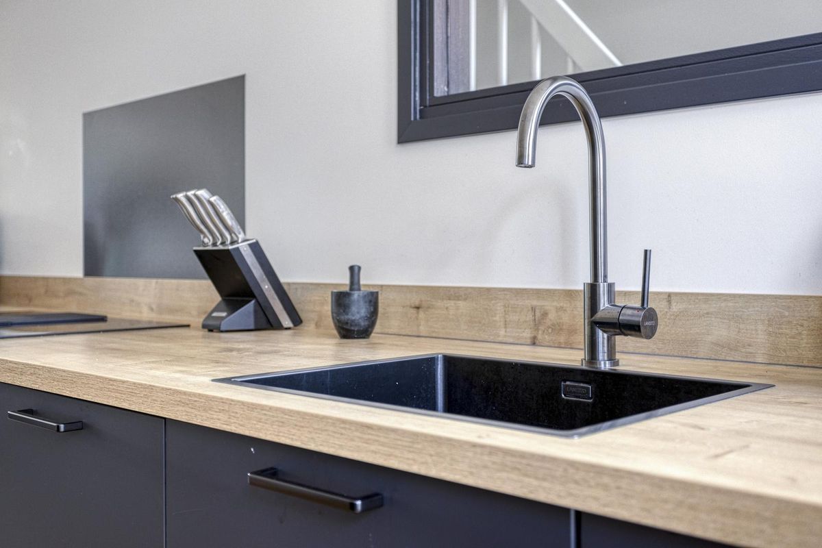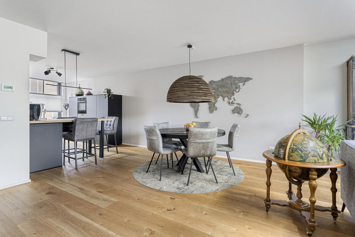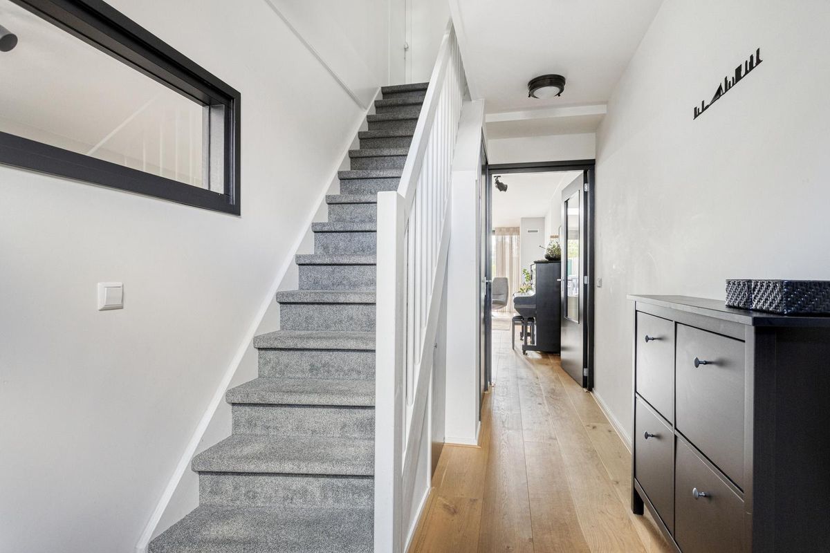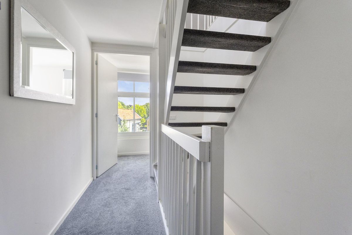 Via de entree met garderobe en toilet komt u binnen in de woning. Aan de voorzijde bevindt zich de moderne open keuken met schiereiland en hoogwaardige inbouwapparatuur. De keuken staat in directe verbinding met de lichte woonkamer met sfeervolle gashaard. Aan de achterzijde zorgen openslaande deuren voor een naadloze overgang naar de tuin – ideaal om binnen en buiten met elkaar te verbinden.