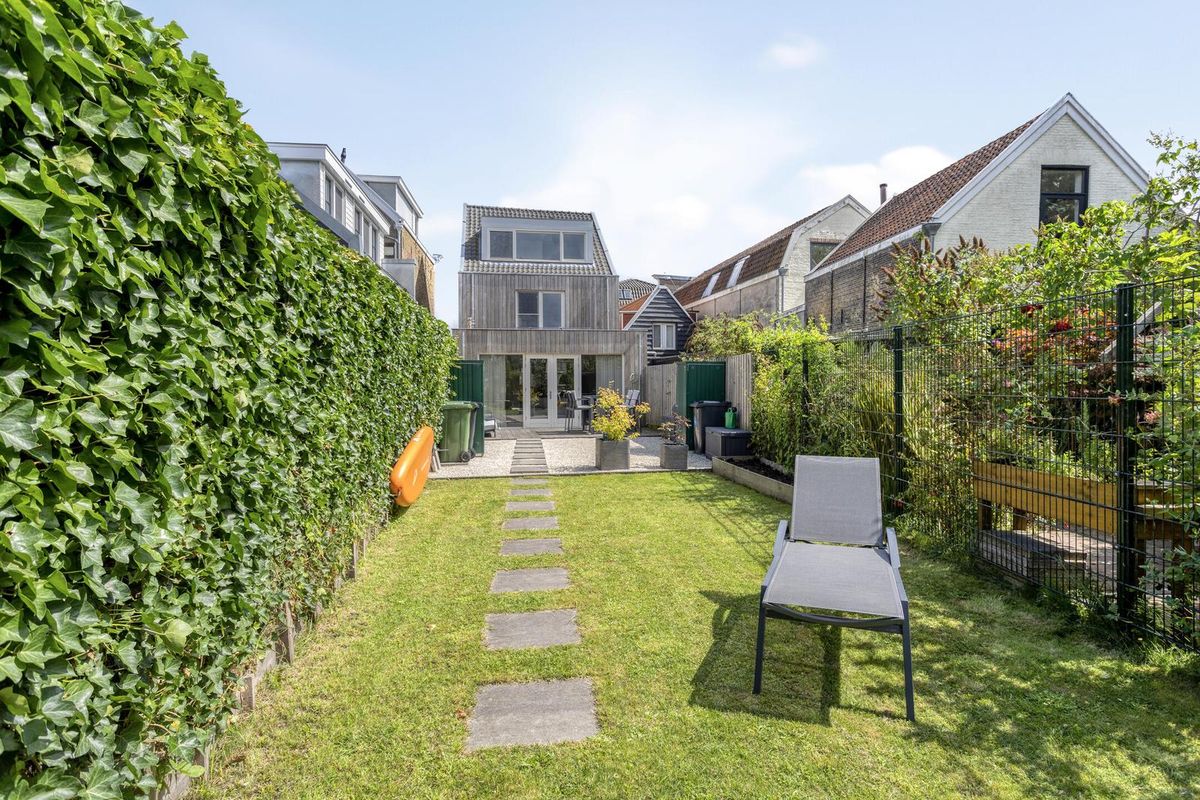 De zonnige, diepe tuin grenst direct aan vaarwater en is voorzien van een aanlegsteiger: perfect voor waterliefhebbers.