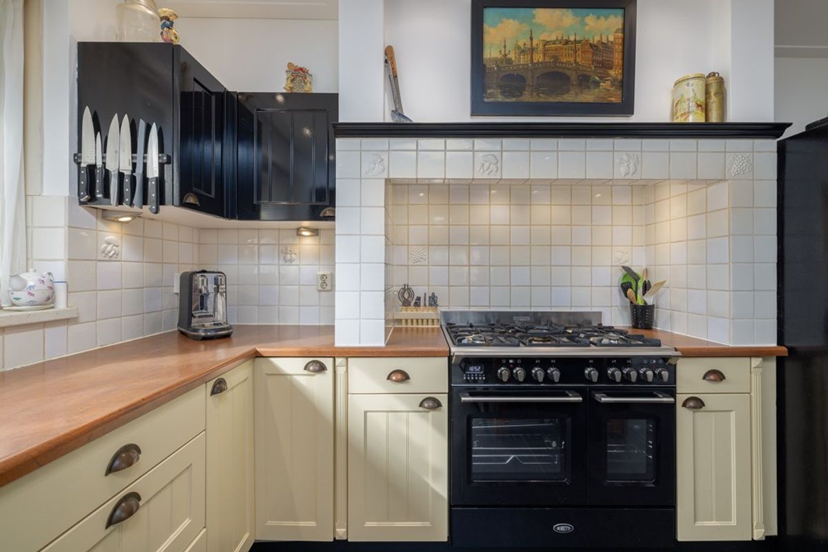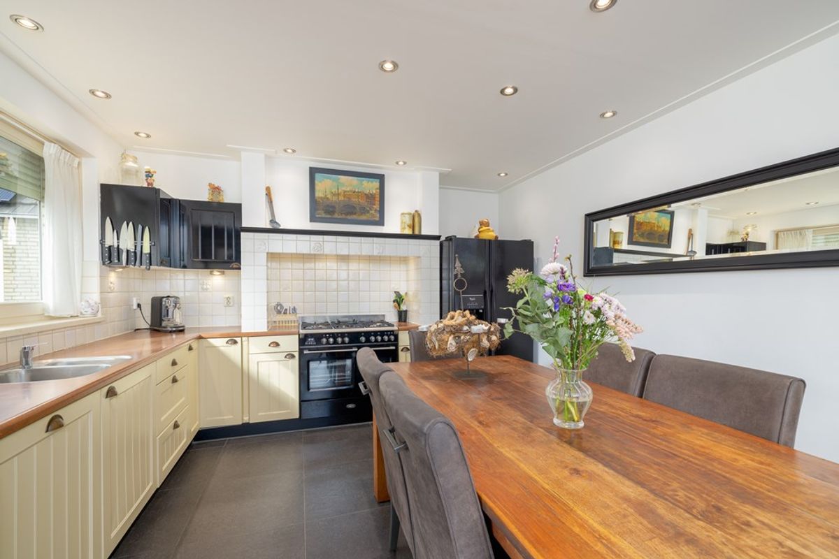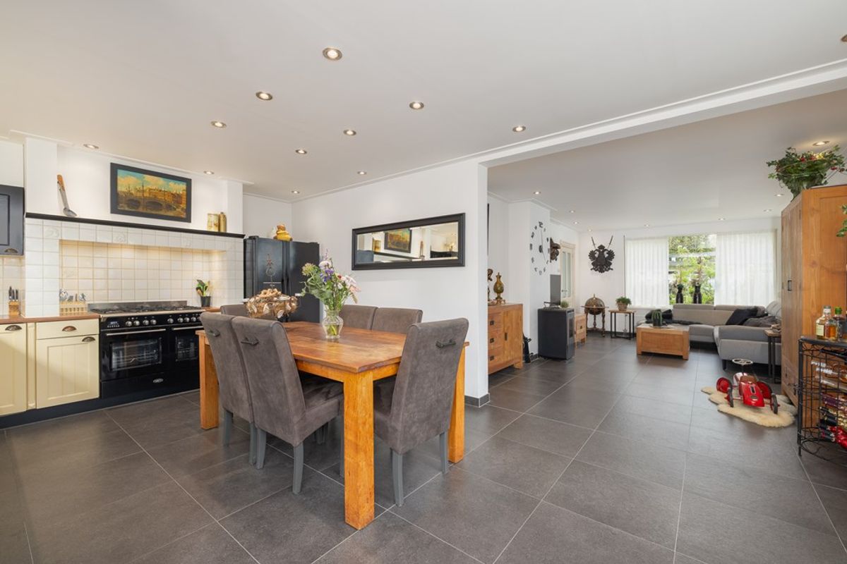 De open verbinding met de keuken versterkt het gevoel van ruimte en maakt deze woning uitermate geschikt voor wie houdt van gezelligheid en samenzijn. De leefkeuken is compleet uitgevoerd en voorzien van alle gewenste inbouwapparatuur, waaronder een vijfpits Boretti-fornuis met schouw, een Amerikaanse koelkast, vaatwasser en combi-oven. Zowel de woonkamer als de keuken zijn afgewerkt met strak gestucte wanden en plafonds, wat bijdraagt aan de moderne en luxe uitstraling.