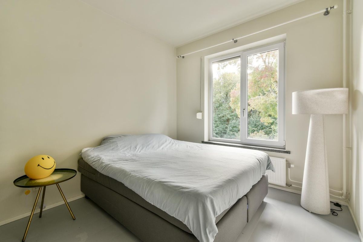 Communal entrance and staircase to the second floor. Very spacious hall with separate WC and access to all rooms. Charming living room with en suite doors. At the front is the sitting room with unobstructed views of the greenery and water. At the rear is the dining room with open kitchen. The kitchen with island is equipped with all the necessary (built-in) appliances. Sliding doors to the balcony, which spans the width of the property, with balcony cupboard. Here you can enjoy the morning sun, with unobstructed views over the greenery of the inner gardens. On this floor there are two good-sized bedrooms; one at the front and one at the rear.