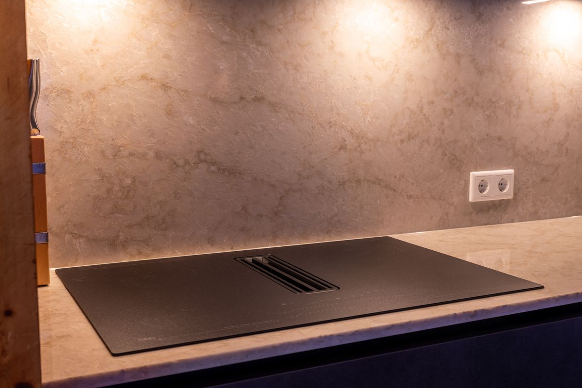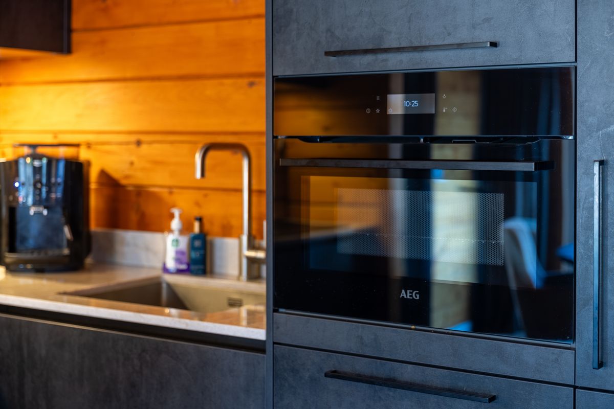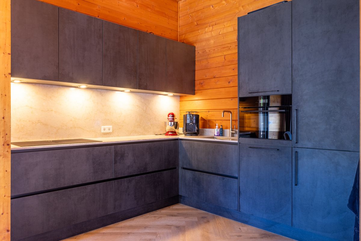 De woonkamer is een lichte, open ruimte waar wonen, koken en leven samenkomen. De vele ramen en de openslaande deuren naar de tuin laten het daglicht rijkelijk binnenstromen. De open keuken is recent vernieuwd en uitgevoerd in een eigentijdse stijl met moderne inbouwapparatuur. Hier kunt u met gemak een uitgebreid diner bereiden, terwijl u toch in contact blijft met uw gezin of gasten in de woonkamer.